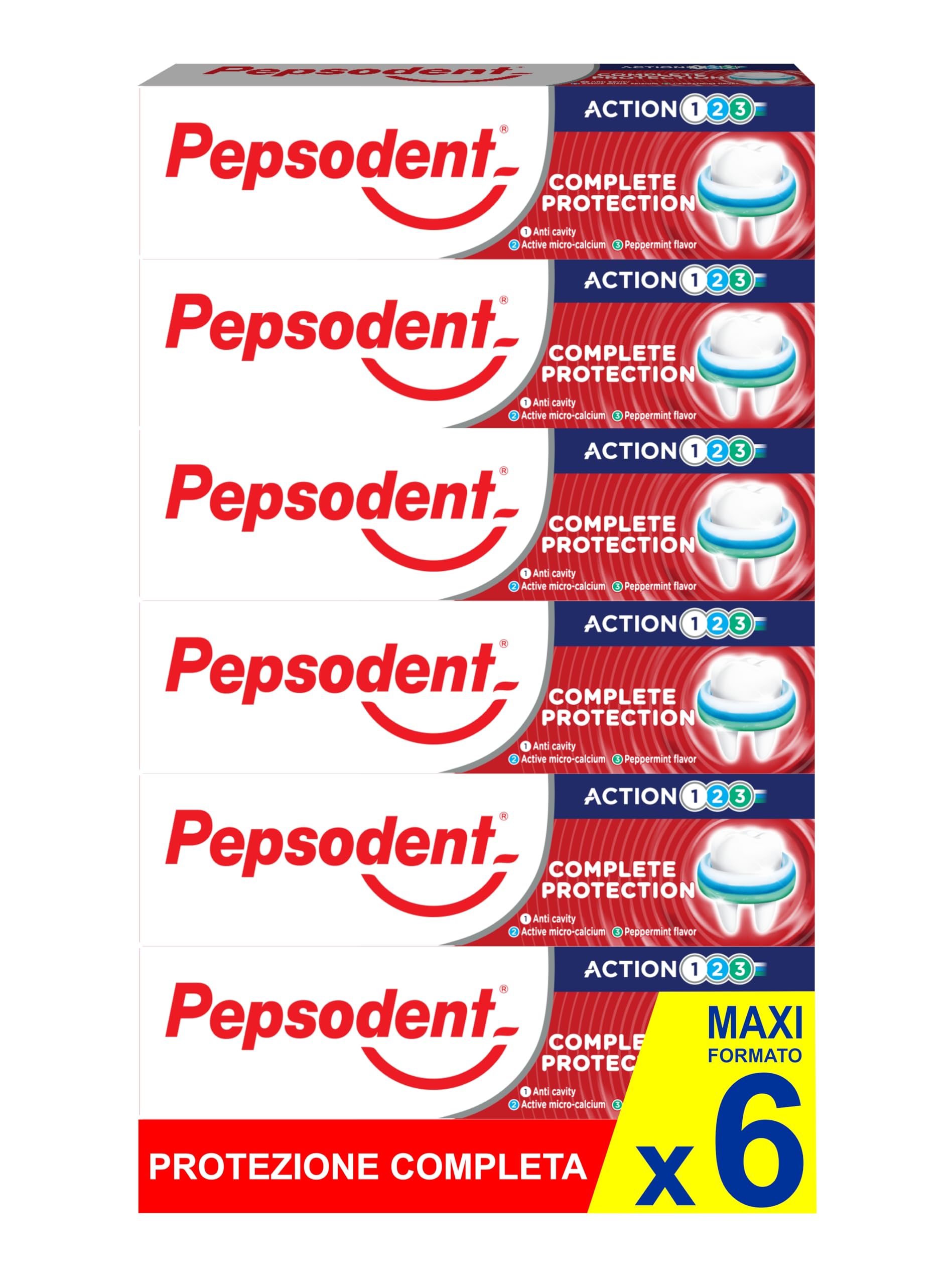 Unilever Pepsodent Complete protection toothpaste with fluorine and calcium to defend against caries during the day 75 ml 6 x 75 ml