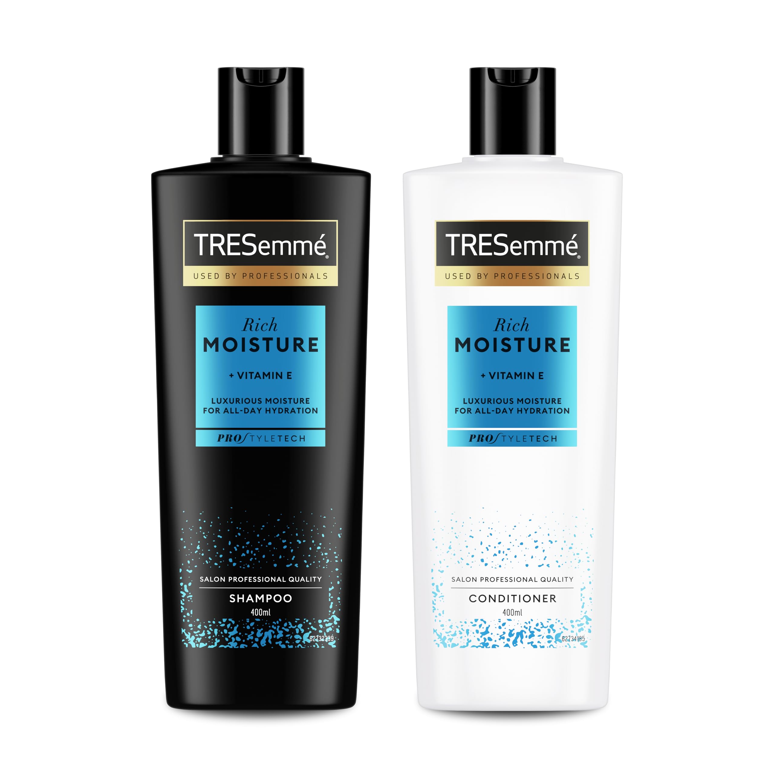 About the Tresemme Rich Moisture Shampoo Conditioner Hair Care Package: With the Tresemme Rich Moisture Hair Care Package for luxurious hydration and soft hair, you can face your day with confidence. A professional look that does not require a hair salon. This 2-piece package contains Tresemme Rich Moisture Shampoo and Conditioner. The Tresemme Rich Moisture Shampoo is enriched with vitamin E and provides luxurious hydration, leaving dry and damaged hair feeling soft all day long. Tresemme Rich Moisture Conditioner with PRO Style Technology contains amino acids and ceramide and makes your damaged hair strong and easy to style from the inside with long-term use. How to use: Create the perfect base for any hairstyle. Start your routine by applying a generous amount of Tresemme Rich Moisture Shampoo to wet hair. Gently massage the scalp with your fingertips to create a lather and then rinse thoroughly. Then squeeze a generous amount of Rich Moisture Conditioner into your palms and distribute evenly throughout damp hair, concentrating on ends to mid-lengths first. Leave on for 2-3 minutes and then rinse thoroughly. About Tresemme: At Tresemme, styling is more than just a hairstyle: it is a part of you. With our professional hair care you can create countless looks. At Tresemme, every choice is made consciously, from the values we promote, the stylists we work with, to the carefully selected ingredients we use, always with an eye to the latest trends and styling. Because after 70 years we still believe in the power of styling. So tell your story, land that job, make your mark and confidently make your dreams come true. Tresemme hair care for a look full of self-confidence. INGREDIENTS Aqua (Water), Sodium Lauryl Sulfate, Sodium Chloride, Cetearyl Alcohol, Dimethicone, Stearamidopropyl Dimethylamine, Fragrance (Parfum), Glycerin, Behentrimonium Chloride, Hydroxyethylcellulose, Citric Acid, Disodium EDTA, Amodimethicone, Polyquaternium-7, Methylchloroisothiazolinone, Methylisothiazolinone, Benzophenone-4 INSTRUCTIONS FOR USE Shampoo: Apply a generous amount to wet hair, gently massage the scalp with fingertips to form a lather and then rinse thoroughly. Conditioner: Apply a generous amount to the palms of your hands and distribute evenly over damp hair, first concentrating on the ends and medium lengths, then work the remaining conditioner towards the roots, leave on for 2-3 minutes and rinse thoroughly. SAFETY WARNING It is recommended to check the ingredients list on the packaging before using the product. See moreUse these Tresemme products together for optimal results. Our hair care experts are the leaders in science and safety - every ingredient is carefully selected to ensure your hair gets the best care possible. Tresemme Rich Moisture Conditioner also contains vitamin E and keeps hair silky soft and hydrated all day long. Tresemme Rich Moisture Shampoo is enriched with vitamin E and provides luxurious hydration exactly where your hair needs it most. Discover the Tresemme Rich Moisture Shampoo and Conditioner Hair Mask Hair Care Package that hydrates your hair and makes it look radiant again.TRESemmé Rich Moisture Shampoo en Conditioner, voor droog, beschadigd haar 400 ml 400 ml Over het Tresemme Rich Moisture Shampoo Conditioner Haarverzorgingspakket: Met het Tresemme Rich Moisture Haarverzorgingspakket voor luxe hydratatie en zacht haar kun je vol zelfvertrouwen je dag tegemoet. Een professionele look waar geen kapsalon aan te pas komt. Dit 2-delige pakket bevat Tresemme Rich Moisture Shampoo en Conditioner. De Tresemme Rich Moisture Shampoo is verrijkt met vitamine E en zorgt voor een luxueuze hydratatie, waardoor droog en beschadigd haar de hele dag zacht aanvoelt. Tresemme Rich Moisture Conditioner met PRO Style Technology bevat aminozuren en ceramide en maakt je beschadigde haar bij langdurig gebruik van binnenuit weer sterk en gemakkelijk te stylen. Hoe te gebruiken: Creëer de perfecte basis voor elk kapsel. Begin je routine met het aanbrengen van een royale hoeveelheid Tresemme Rich Moisture Shampoo op nat haar. Masseer de hoofdhuid zachtjes met je vingertoppen om het te laten schuimen en spoel daarna grondig uit. Knijp vervolgens een royale hoeveelheid Rich Moisture Conditioner in je handpalmen en verdeel dit gelijkmatig door het vochtige haar, waarbij je je eerst concentreert op de punten tot halverwege de lengten. 2-3 minuten laten inwerken en daarna grondig uitspoelen. Over Tresemme: Bij Tresemme is styling meer dan zomaar een kapsel: het is een deel van jezelf. Met onze professionele haarverzorging kun je talloze looks creëren. Bij Tresemme wordt elke keuze bewust gemaakt, van de waarden die we uitdragen, de stylisten met wie we samenwerken, tot de zorgvuldig geselecteerde ingrediënten die we gebruiken, altijd met het oog op de nieuwste trends en styling. Omdat we na 70 jaar nog steeds geloven in de kracht van styling. Dus vertel je verhaal, sleep die baan in de wacht, druk je stempel en maak vol zelfvertrouwen je dromen waar. De haarverzorging van Tresemme voor een look vol zelfvertrouwen. INGREDIËNTEN Aqua (Water), Sodium Lauryl Sulfate, Sodium Chloride, Cetearyl Alcohol, Dimethicone, Stearamidopropyl Dimethylamine, Fragrance (Parfum), Glycerin, Behentrimonium Chloride, Hydroxyethylcellulose, Citric Acid, Disodium EDTA, Amodimethicone, Polyquaternium-7, Methylchloroisothiazolinone, Methylisothiazolinone, Benzophenone-4 GEBRUIKSAANWIJZING Shampoo: breng een royale hoeveelheid aan op nat haar, masseer zachtjes de hoofdhuid met de vingertoppen om schuim te vormen en spoel vervolgens grondig uit. Conditioner: doe een royale hoeveelheid in de handpalmen en verdeel het gelijkmatig over het vochtige haar, concentreer eerst op de punten en gemiddelde lengtes, dan de resterende conditioner in de richting van de aanzet inwerken, 2-3 minuten laten inwerken en grondig uitspoelen. VEILIGHEIDSWAARSCHUWING Het wordt aanbevolen de ingrediëntenlijst op de verpakking te controleren vo