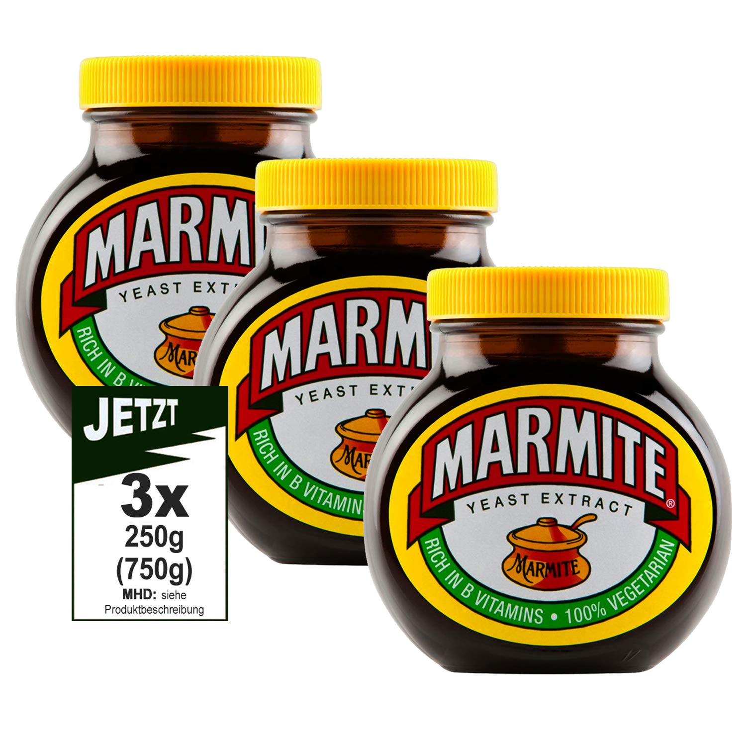 INGREDIENTS Yeast extract (contains barley, wheat, oats, rye), salt, vegetable juice concentrate, vitamins (B1, B2, niacin, folic acid, B12), natural flavors (contains celery)Marmite Yeast Extract Original 3 x 250 g (750 g) - pikant beleg, gistextract INGREDIËNTEN Gist extract (bevat gerst, tarwe, haver, rogen), zout, groentesapconcentraat, vitaminen (B1, B2, niacine, foliumzuur, B12), natuurlijke aroma's (bevat sellerie)