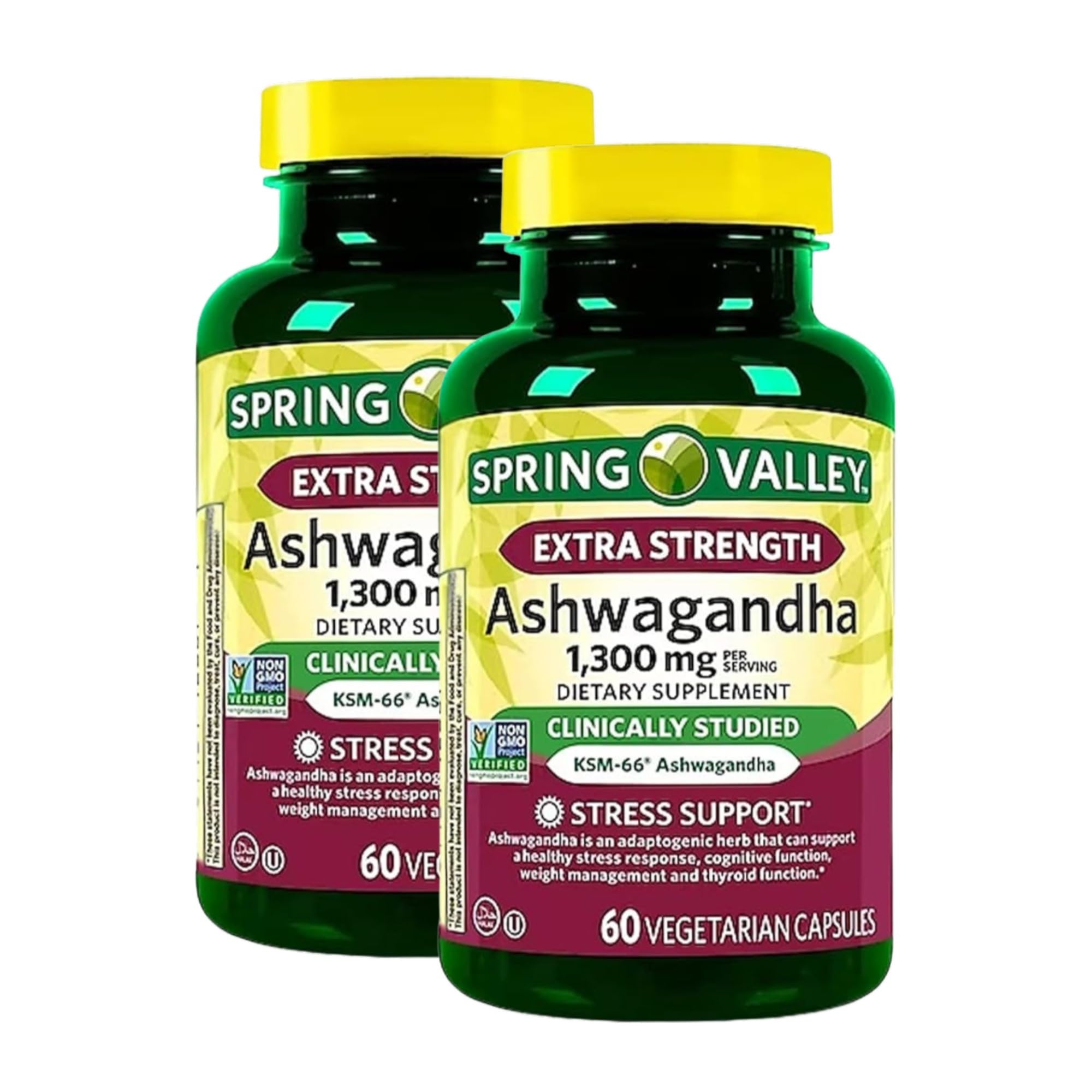 Ashwagandha 1300 mg Extra Strength Pack of 2 is a powerful daily supplement designed to support your overall wellness. Each serving provides 1300 mg of ashwagandha root extract and powder, a traditional adaptogen known for helping the body adapt to daily stress and support mental focus and balance. This ashwagandha supplement is ideal for both men and women looking to maintain a steady, centered lifestyle. With a vegetarian formula free from gluten, soy, dairy, artificial additives, and containing less than 5mg of sodium per serving, it fits easily into a variety of nutritional plans. Whether you're adding ashwagandha capsules to support mood balance, or including it as part of a broader wellness regimen, this clean-label product offers trusted support without unnecessary ingredients. It also complements other natural support elements like gaba and general mood-focused routines. Extra Strength Formula: 1300 mg of ashwagandha root extract and powder per serving. Clean Label: No gluten, soy, milk, sugar, or artificial colors flavors. Supports Daily Balance: Traditionally used to help the body adapt to stress and maintain cognitive focus. Vegetarian Capsules: 60 capsules per bottle, suitable for daily use. Non-GMO: Made with quality ingredients to align with modern wellness needs. Incorporate ashwagandha 1300 mg capsules into your wellness routine for daily support that fits your lifestyle.Convenient Supply – One bottle contains 60 vegetarian capsules, easy to take daily as part of a balanced lifestyle. Clean Formula – Gluten free, non-GMO, lactose free, and made without yeast, wheat, milk derivatives, sugar, soy, artificial colors, or flavors less than 5 mg sodium per serving. Ashwaganda Root Powder Extract – Includes ashawanda and ashwaganda variations often searched, providing a trusted option for daily wellness support. Ashwagandha Supplements for Women and Men – Popular adaptogenic herb traditionally used to help the body maintain balance in times of occasional stress. Extra Strength Ashwagandha 1300 mg – Each serving delivers a high-potency dose of ashwagandha root extract in convenient vegetarian capsules.