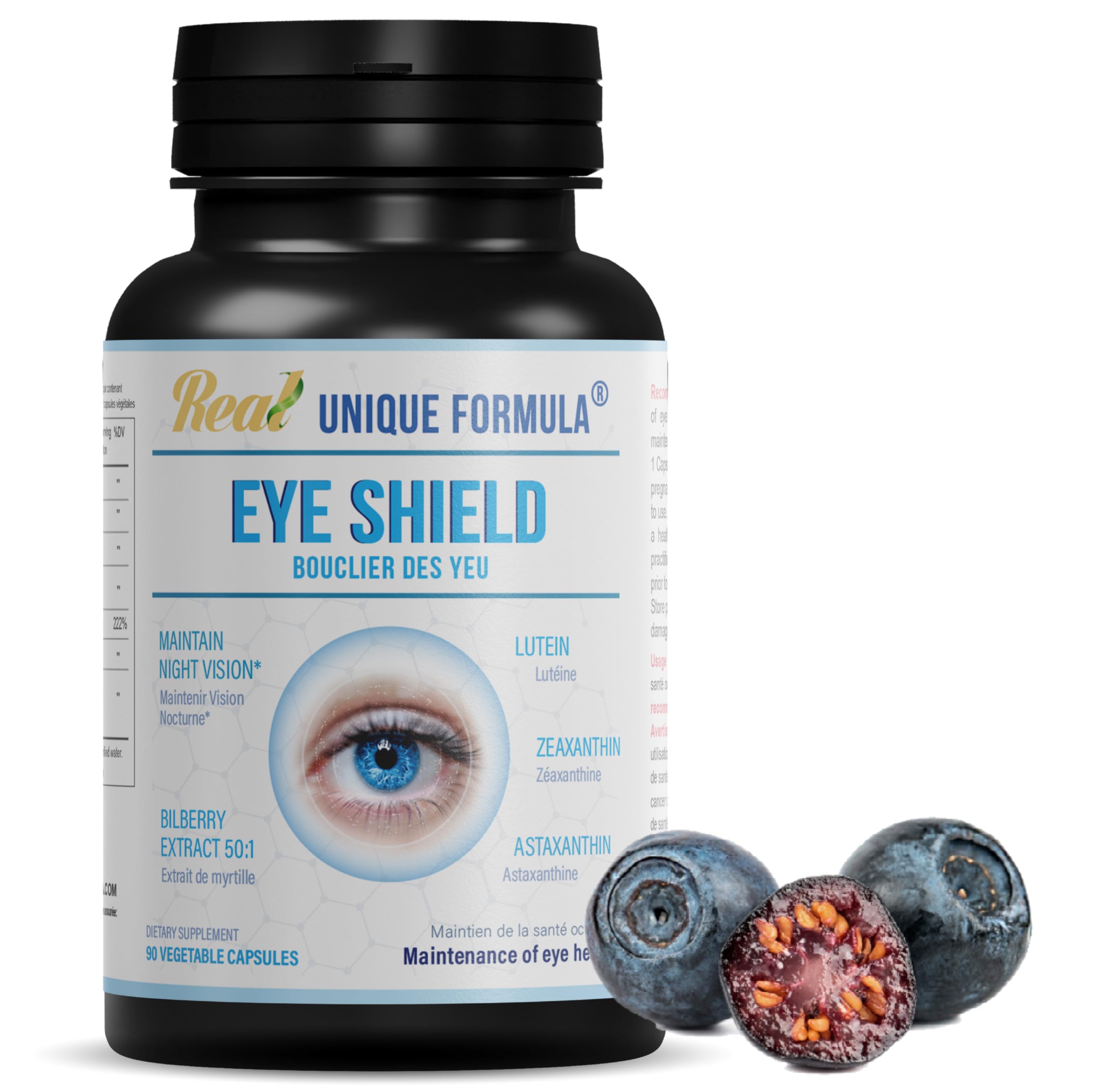 Unique Formula Eye Shield Supplement with Bilberry Extract Lutein Zeaxanthin Astaxanthin and Beta-Carotene - Supports Dry Eyes Vision Health and Night Vision 90 Veg Capsules