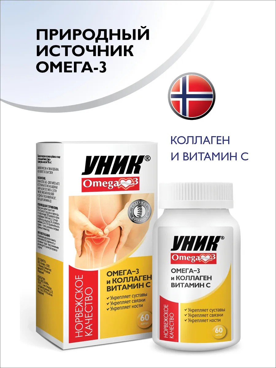 Уник Омега-3 и Коллаген с витамином C, капсулы, 60 шт.