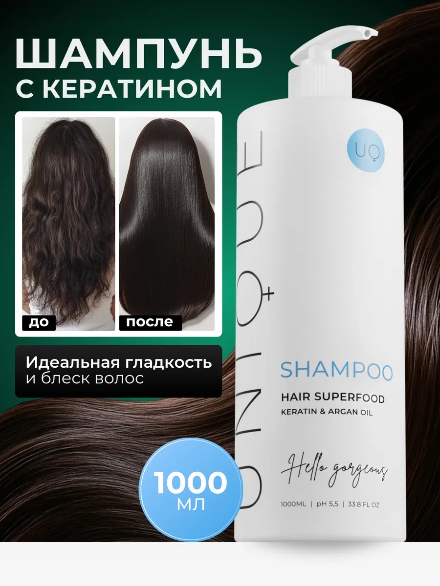 UNIQUEpro Шампунь для волос профессиональный с кератином 1000 мл