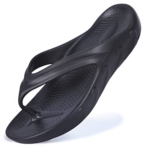 UNIQWETO Mens And Womens Comfort Flip Flops With Arch Support Heel Cup Thong Sandals Indoor Outdoor For Walking Slippers 14 Women/12 Men Black