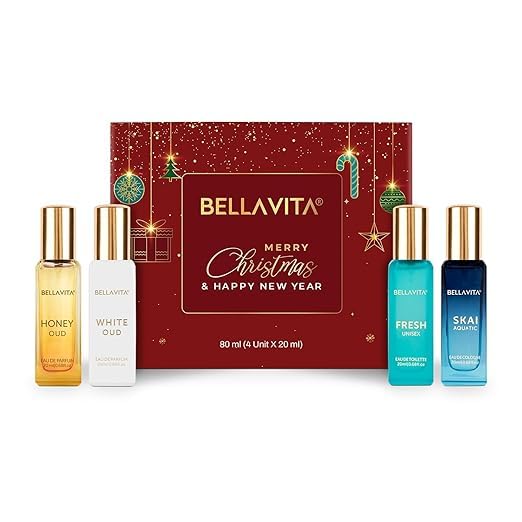 Unbox a treasure of little luxuries with our Unisex Luxury Perfume Set that makes for the perfect gift for everyone. An arsenal of indulgence, this box set carries some of Bella Vita Organic's most iconic fragrances. A little bit about the fragrances in the Bella Vita Organic Unisex Luxury Perfume Set: White Oud: The Spice Odyssey. Charmed by the tangy Artemisian Lemon at the top, freesias at its heart, The White Oud is a revelation of all things 'sweet' and 'spice'! Skai Aquatic: Exudes Freshness and Sophistication. Top note of bergamot fuses perfectly at its base and pink pepper at its heart. The Skai Aquatic Eau De Cologne has a fresh appeal for the effortlessly sophisticated yet understatedly charming! Fresh: A mythical fragrance rephrg ancient elegance. Top Bergamot note is accentuated by lavender at its heart and Ylang-Ylang at its base, manifesting an irresistibly iconic appeal. A breath of Fresh air, the Fresh Eau De Toilette is full of purity and versatility! "An Enchanting Encounter. Honey Oud: It's a fruity-floral flavour symphony, harmoniously coexisting to bring out colourful ways of life. The sweet melody of honey and bergamot at the top is cascadingly enchanting! Delightful notes of rose and Oud at its heart comfortingly lend into a blanket base of Oud and Vanilla. A sinful exploration of delectable nector of honey revealing the sweeter facets of life!"