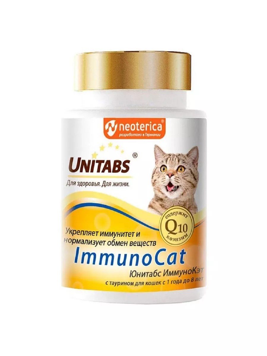У стерилизованных кошек и кастрированных котов меняется обмен веществ. Они склонны к мочекаменной болезни и набору веса, поэтому их рацион требует особого внимания. Для крепкого здоровья питомца и профилактики проблем мочевыделительной системы добавьте в рацион комплексные витамины Unitabs SterilCat!Unitabs SterilCat — это витаминно-минеральный комплекс для кошек любого возраста и породы, который содержит коэнзим Q10 и все необходимые витамины, макро- и микроэлементы для нормализации обмена веществ и укрепления иммунитета. Молочный вкус и запах витаминок придутся по душе привередливым кошкам.Коэнзим Q10 — это витаминоподобное вещество, которое является незаменимым элементом жизнедеятельности организма. Активные компоненты:DL-метионин подкисляет мочу, предотвращая образование мочевых камней струвитов (трипельфосфатов).Таурин является незаменимой аминокислотой. Необходим для поддержания качества шерсти и целостности сетчатки глаза, а также для работы сердечной-сосудистой, пищеварительной и нервной систем. L-карнитин — аминокислота, витаминоподобное вещество. Активирует жировой обмен, осуществляя транспорт жирных кислот в митохондрии, где происходит их разрушение с выделением энергии. Коэнзим Q10 — катализатор, ускоряет метаболические процессы. Также действует как антиоксидант, нейтрализует вредные для организма свободные радикалы, способствуя замедлению процессов старения, профилактике заболеваний сердечно-сосудистой системы, укреплению иммунной системы, защите здоровья дёсен и зубов.Unitabs SterilCat сбалансирована с учётом суточной потребности в витаминах, макро- и микроэлементах, необходимых для кастрированных котов и стерилизованных кошек старше 8-месячного возраста.Оптимальное содержание и соотношение витаминов, макро- и микроэлементов нормализует и улушает метаболизм кастрированных и стерилизованных животных, предотвращает рабочую нагрузку на мочевыделительную систему и образование мочевых камней (струвитов).