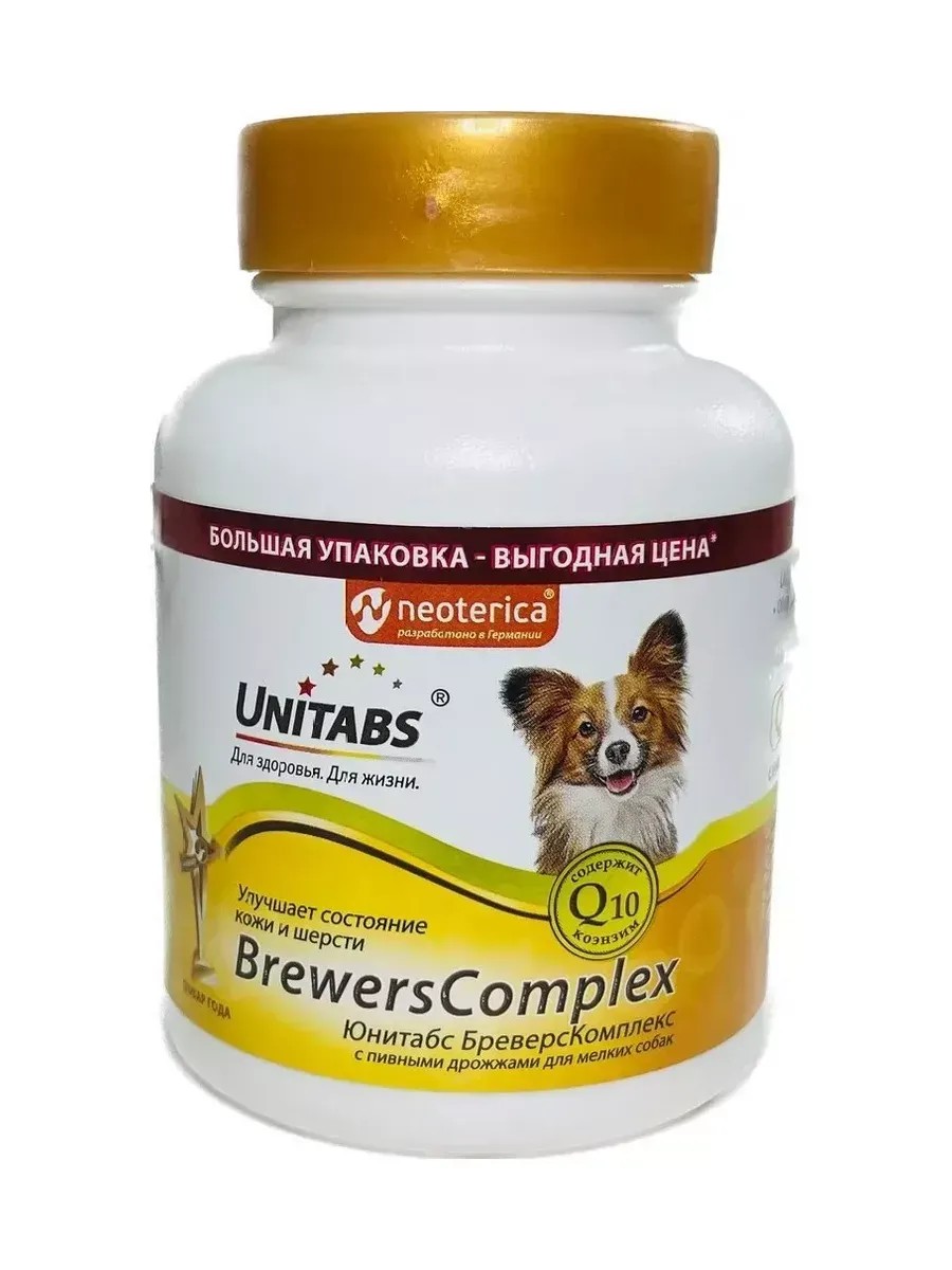 Regular use of a vitamin complex for dogs will help improve the quality of their coat and maintain healthy skin. Pet products like this complex are an important part of your pet's care. Vitamins for small breed dogs provide essential support, helping them maintain health and vitality for years to come. By choosing Unitabs pet products, you're ensuring your pet's health and well-being by providing them with all the necessary vitamins and minerals.
