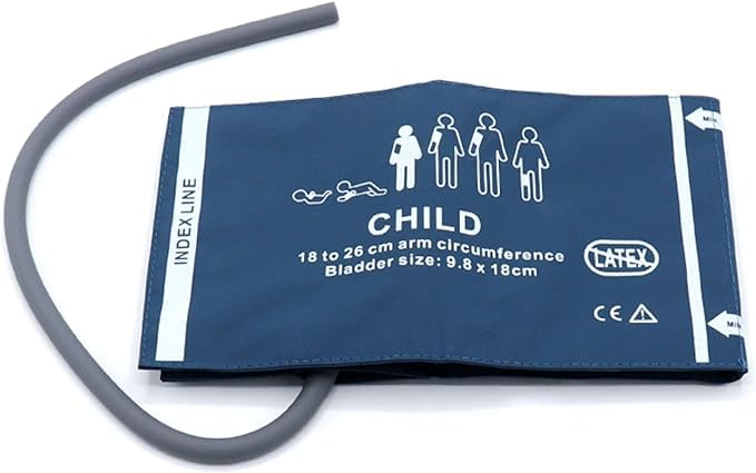 Universal NIBP Cuff forPediatric Child 18-26cm Single Tube Reusable PU Replacement Blood Pressure Cuff No Connector Child Blue PU+Single l Tube