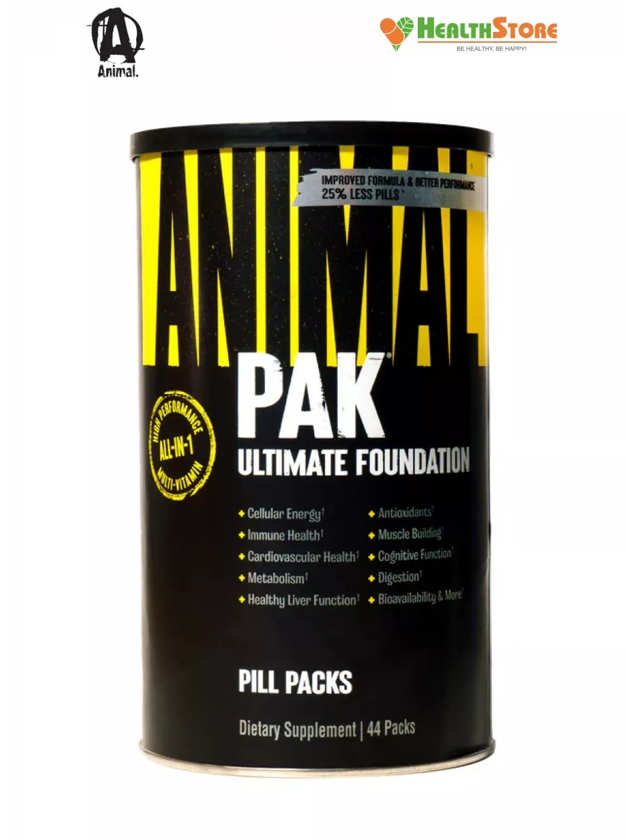 ATTENTION!!! NEW VERSION of Animal Pak vitamins!!! IMPROVED FORMULA!!! 8 TABLETS INSTEAD OF 11!!! WHAT IS ANIMAL PAK? It's a complete multivitamin with minerals, amino acids, antioxidants, immune system support, liver support, and many other added benefits. Universal Nutrition Animal Pak is the best sports vitamin in the sports supplement industry. In each packet, you get an extensive arsenal of more than 60 key ingredients, delivered in the right amount at the right time. 1. Animal Pak NEW IMPROVED FORMULA: Better performance and 25% fewer tablets - the concentrated formula delivers the benefits of 12 supplements in one convenient package, now containing only 8 tablets. 2. Animal pack ESSENTIAL VITAMINS AND MINERALS FOR DAILY NUTRITION AND IMMUNITY SUPPORT: Optimized nutritional value to meet athletes' daily vitamin, mineral, and herbal needs, including zinc, vitamins C, B, and D, amino acids, and more. 3. Animal pak INCLUDES SCIENTIFICALLY PROVEN SPECTRA: Spectra is an all-natural blend of 29 fruits, vegetables, and herbs that helps increase blood flow to muscles and support cellular energy by improving oxygen content. 4. ADDED IMMUNITY AND BIOAVAILABILITY SUPPORT: Fortified with spirulina, chlorella, and ginkgo biloba to further stimulate the body's natural immune response, as well as AstraGin to improve nutrient bioavailability. FREQUENTLY ASKED QUESTIONS: HOW MANY TABLETS ARE IN ONE ANIMAL PAK? The new version contains 8 tablets with a special coating for ease of consumption. WHY DO THE NEW ANIMAL PAK TABLETS LOOK DIFFERENT? When the new formula was released in 2020, the manufacturer added several new tableting technologies. The tablets are compressed more efficiently and can change color and appearance when ingredients with different color profiles are added. HOW TO USE ANIMAL PAK? Take 1 packet with plenty of water during breakfast or any other meal. Those who compete or train at a higher intensity are advised to take 2 packets - one in the morning and one in the evening. THE INSTRUCTIONS SAY TO TAKE 2 PACKETS. CAN I DRINK ONLY 1 PACKET? One packet is suitable for most people. If you are an elite bodybuilder or strength athlete preparing for a competition that requires a depleting diet, then two packets are recommended.