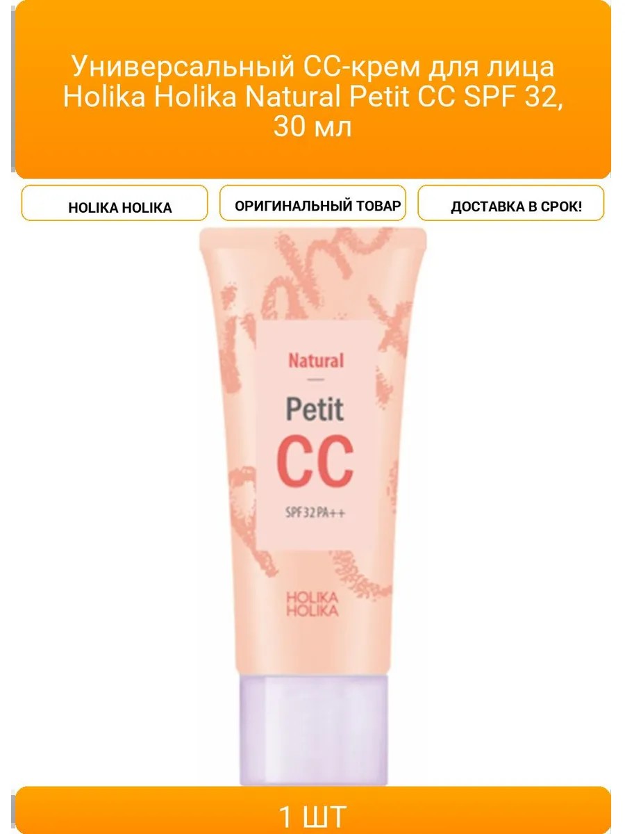 | Комплектация | Универсальный СС-крем для лица Holika Holika Natural Petit CC SPF 32, 30 мл |