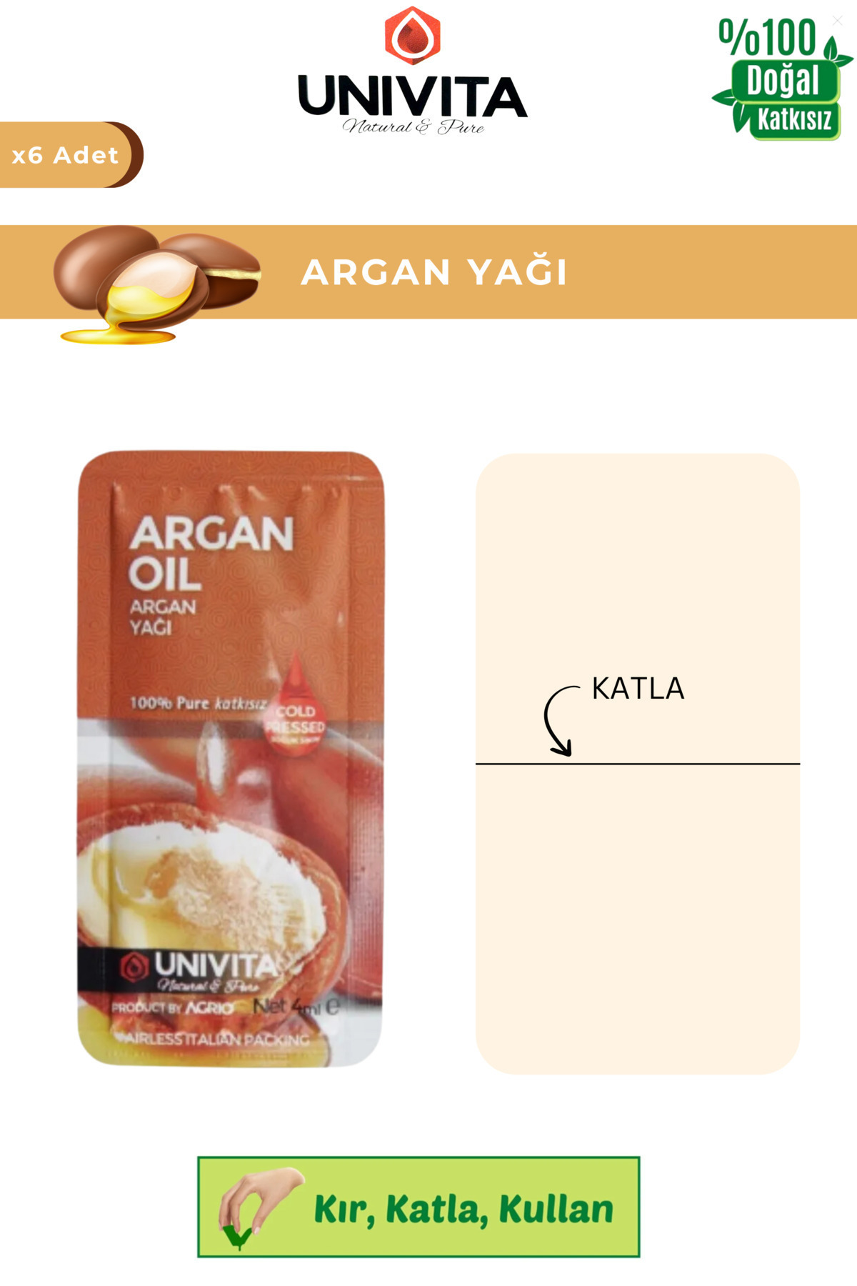 Univita 0 Natural Pure Cold Pressed Argan Hair Eyebrow Eyelash Care Oil 4 ml X 6