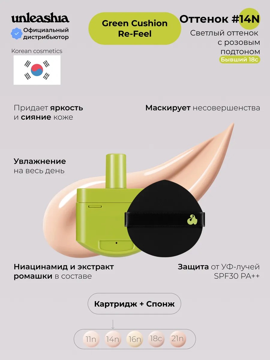 Тональный кушон с сатиновым финишем обеспечивает маскировку несовершенств, стойкое покрытие, ровный тон кожи и мягкое здоровое сияние.