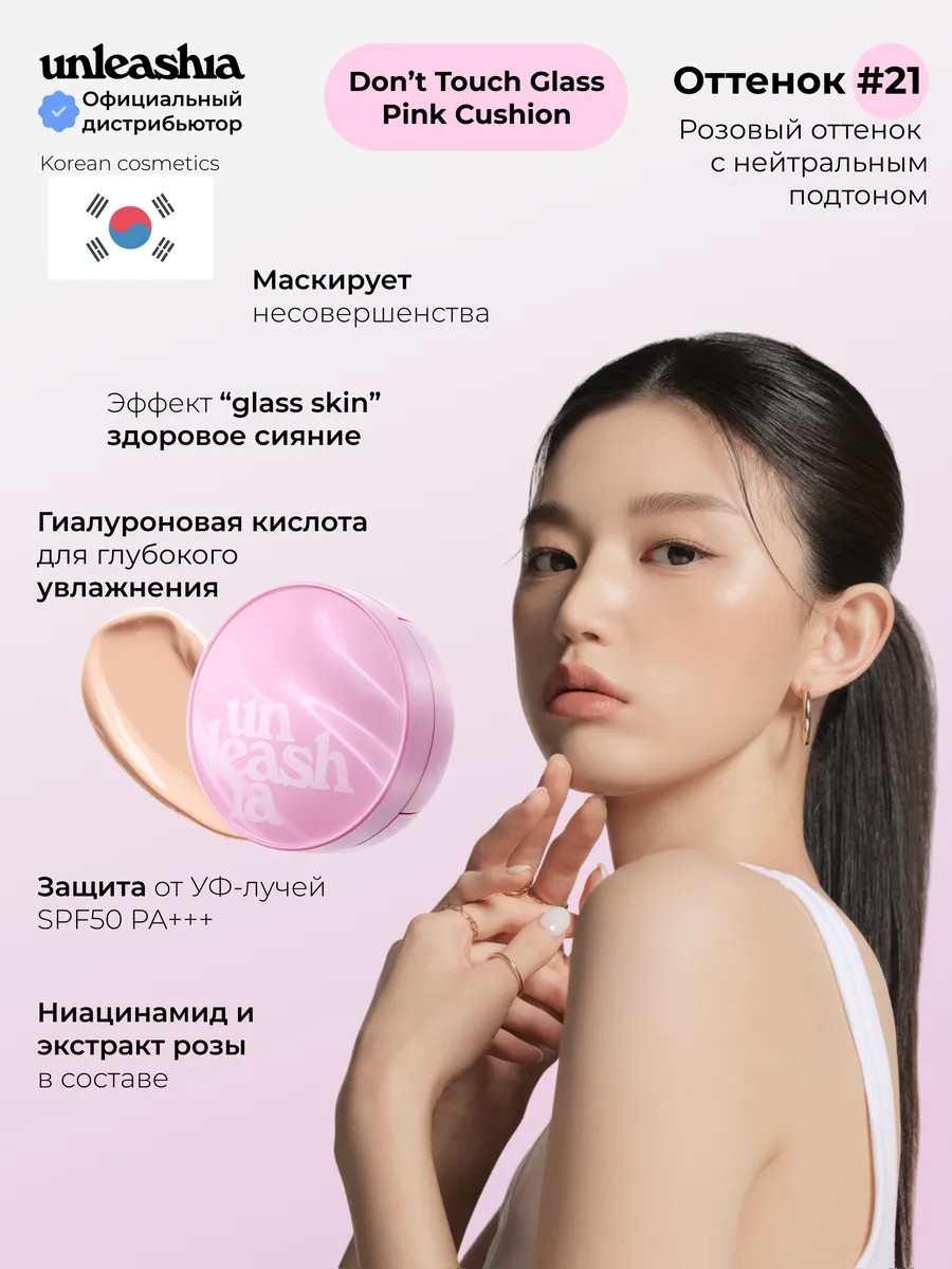 Unleashia Don't Touch Glass Pink Cushion Кушон для лица Корея Оттенок #21 в светлом оттенке с нейтральным подтоном