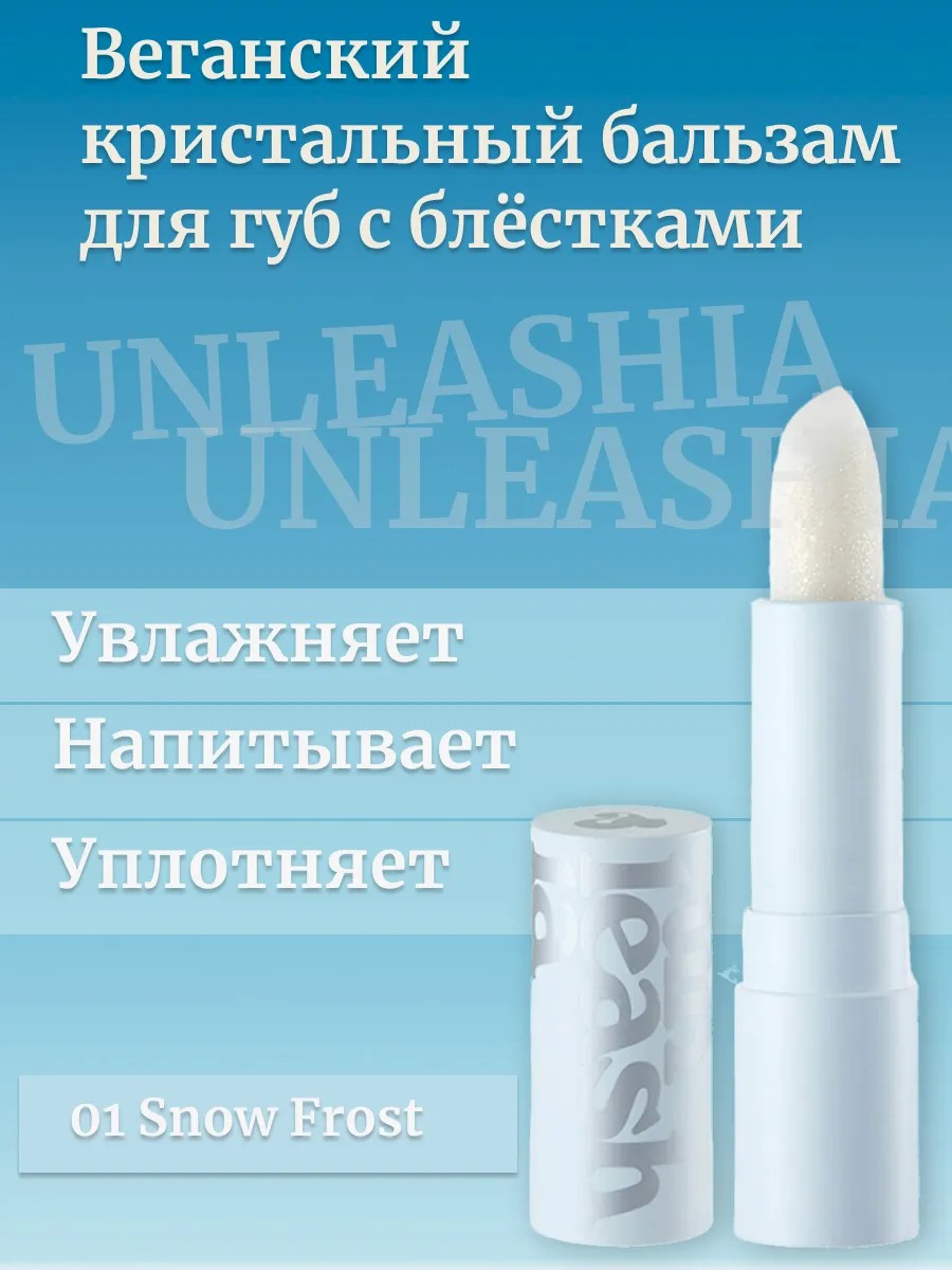 Веганский кристальный бальзам для губ с блёстками Unleashia Glacier Vegan Lip Balm в эстетичном формате глиттерного стика, который завораживает с первого взгляда. Богатый витаминный состав бальзама интенсивно напитывает и борется с шелушениями, дарит губам магическое сияние.