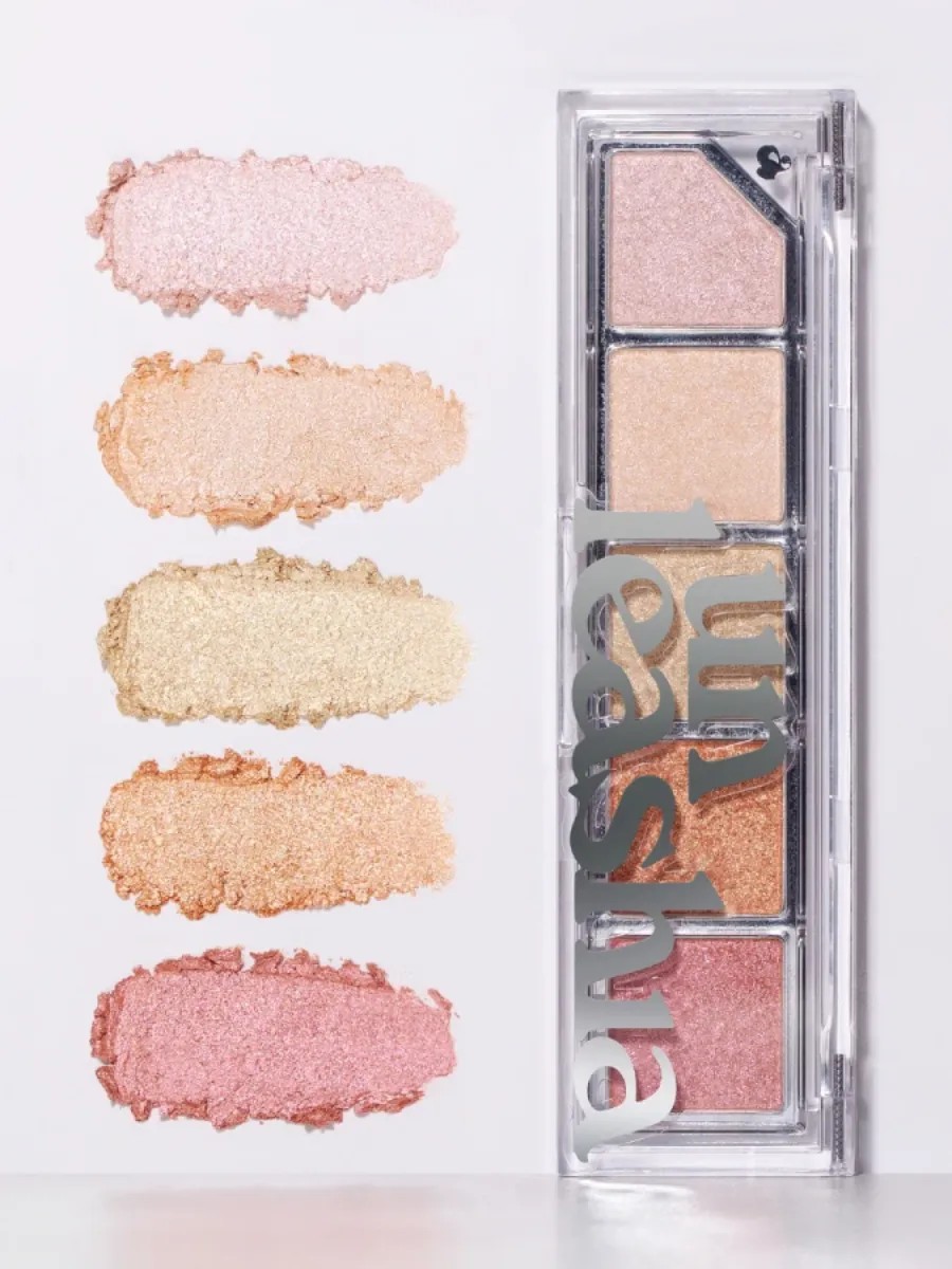 Палетка сияющих хайлайтеров Unleashia Mood Shower Face Palette для многофункционального использования помогает расставить акценты в макияже, визуально придать лицу объём, подчеркнуть его контуры и подарить естественное свечение.