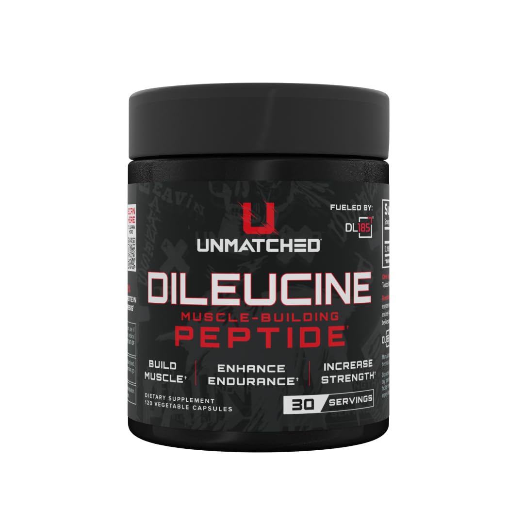 THIRD-PARTY TESTED: All Unmatched products are manufactured in an NSF Certified cGMP facility and 3rd-party tested. This thorough testing process is crucial in ensuring that you are receiving a product that meets the highest standards of excellence and reliability. ALL NATURAL PRODUCTS: The Unmatched lineup are all naturally sweetened, flavored, and colored to ensure your experience is one you can enjoy without any artificial additives. This commitment means you can trust that each product is not only delicious but also aligns with a healthy lifestyle. MUSCLE GROWTH RECOVERY: Unmatched dileucine delivers a potent 2,000mg of pure dileucine, as DL185, per serving that helps support enhanced recovery, greater muscle repair, and lean muscle gains—so you can bounce back faster and train harder. BETTER THAN LEUCINE: Dileucine Peptides seriously upregulate muscle protein synthesis in a way regular leucine cannot get close to, which means your muscles will recover far quicker between workouts! As a leucine-based dipeptide, dileucine offers enhanced bioavailability and absorption compared to standard l-leucine. LEVEL UP WITH DILEUCINE: This groundbreaking amino acid peptide is all about helping you accelerate your recovery and muscle growth to new heights by impacting muscle protein synthesis in a way leucine simply cannot compete with.