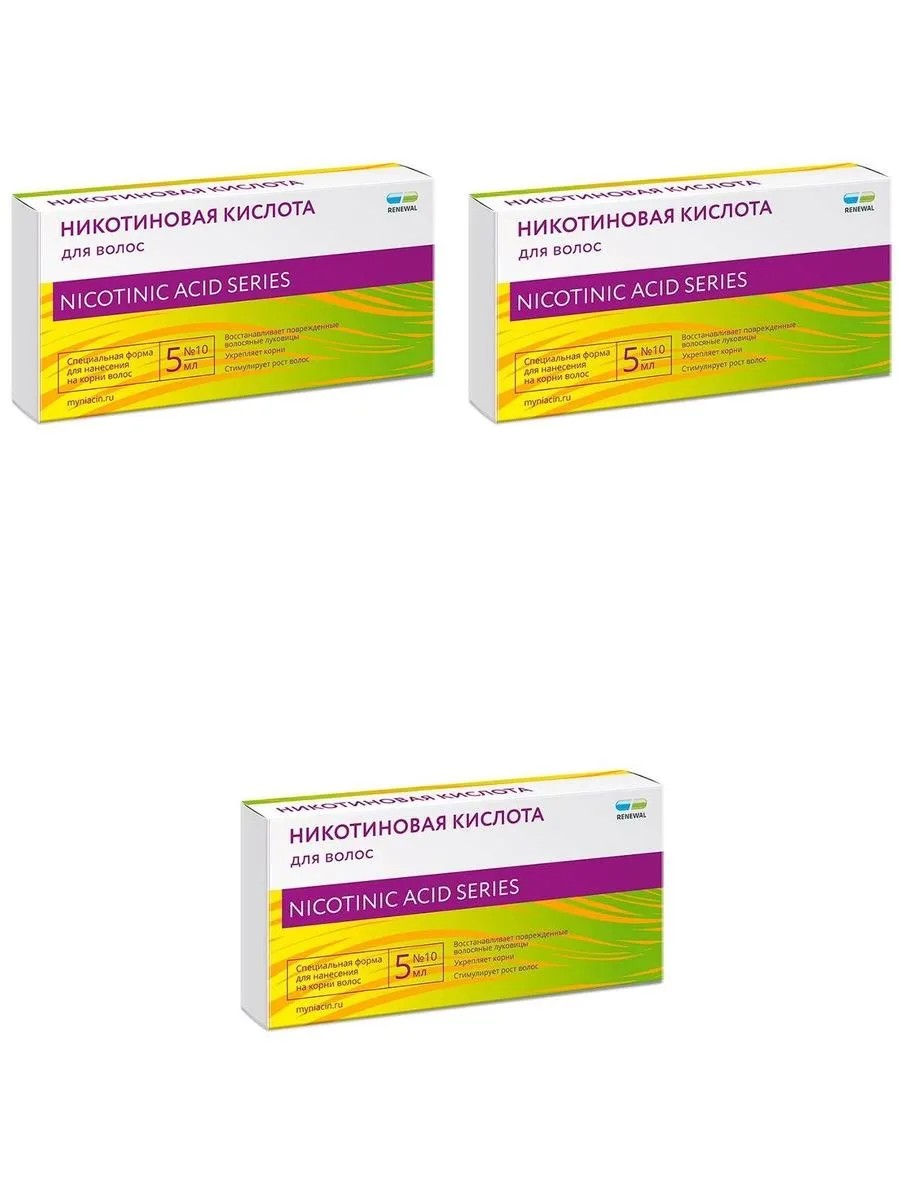 Nicotinic acid for hair 5ml #10/renewal. Restores damaged hair follicles, strengthens roots, stimulates hair growth. Special form for application to hair roots. Nicotinic acid, sodium bicarbonate, purified water.