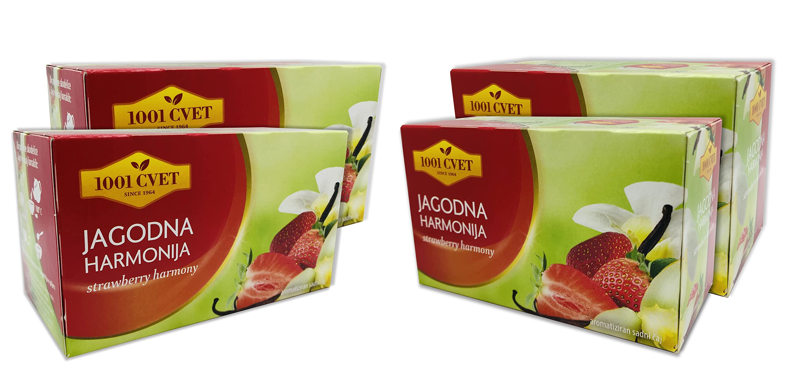 Strawberry Harmony: Harmony's refreshing strawberry and vanilla fruit tea is perfect for those precious moments of pampering. The sweet strawberry and intoxicating vanilla will enhance your well-being while pampering and refreshing you. Strawberry Harmony fruit tea is allergen-free and has a shelf life of 2 years. Store in a dry place at room temperature. Weight and Packaging: 50g - 20 strawberry tea bags (2.5g each) Features: Our blended fruit teas are completely free of artificial flavors. Preparation: Pour the fruit tea bag into a cup with 200ml of boiling water. After 8 minutes, remove the tea bag. Buy Strawberry Harmony tea today and enjoy a healthy and delicious tea experience. INSTRUCTIONS FOR USE Pour the fruit and herbal tea bag into the cup with 200 ml of boiling water. After 8 minutes, remove the filter bag.