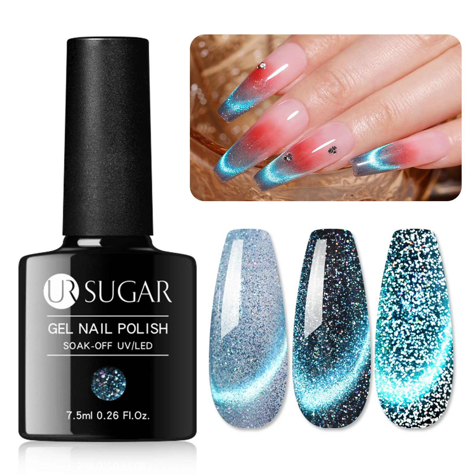 ? GORGEOUS GIFT FOR HER: This gel nail polish comes with a gift package. It is an excellent choice for you as a present for birthdays, anniversaries, Valentine's Day, Halloween, Christmas, graduation or Mother's Day. Everyone who has received it will be attracted by its blinding light. ?UNIQUE DESIGN AND EASY APPLICATION: UR SUGAR gel nail polish set with an round clear colour window design which show you the original gel colours in the bottle, it can help you easy to find the one that suits your style when you manicure. The soak off gel polish kit need base and top coat, curing under UV light about 60-120 seconds, depends on the thickness of the nail polish. Apply every layer thinner to avoid of not drying, and apply more layers to get better saturation. ? HEALTHY INGREDIENTS AND DURABLE: The reflective glitter magnetic gel polish uses healthy ingredients, is non-toxic, low-odor and low-irritation. This will reduce damage to your nail bed! Apply each thin layer and you can get a better gel nail effect. With proper application, not easy to peel off and no chipping, can keep about 3 weeks long lasting. ? DIFFERENT STYLES: No longer the traditional monochrome nail! This glitter magnetic gel nail polish can be combined with any other color of the gel polish. You can apply it in different layers of paint and design your own nails to show your style. It is suitable for various occasions. ? REFLECTIVE GLITTER CAT MAGNETIC EYE GEL NAIL POLISH: Package includes 1 * 7.5ml blue glitter gel nail polish. The package contains 1 reflective glitter diamond cat magnetic eye gel nail polishes with sequins. Anyone can make you more attractive and shine in the crowd.