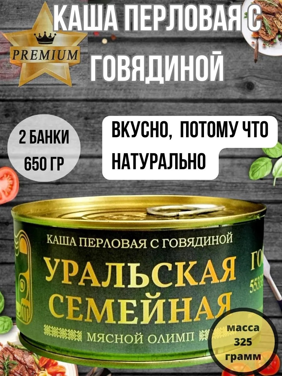 Уральская Семейная Консервированная каша перловая с говядиной ГОСТ- 2 шт