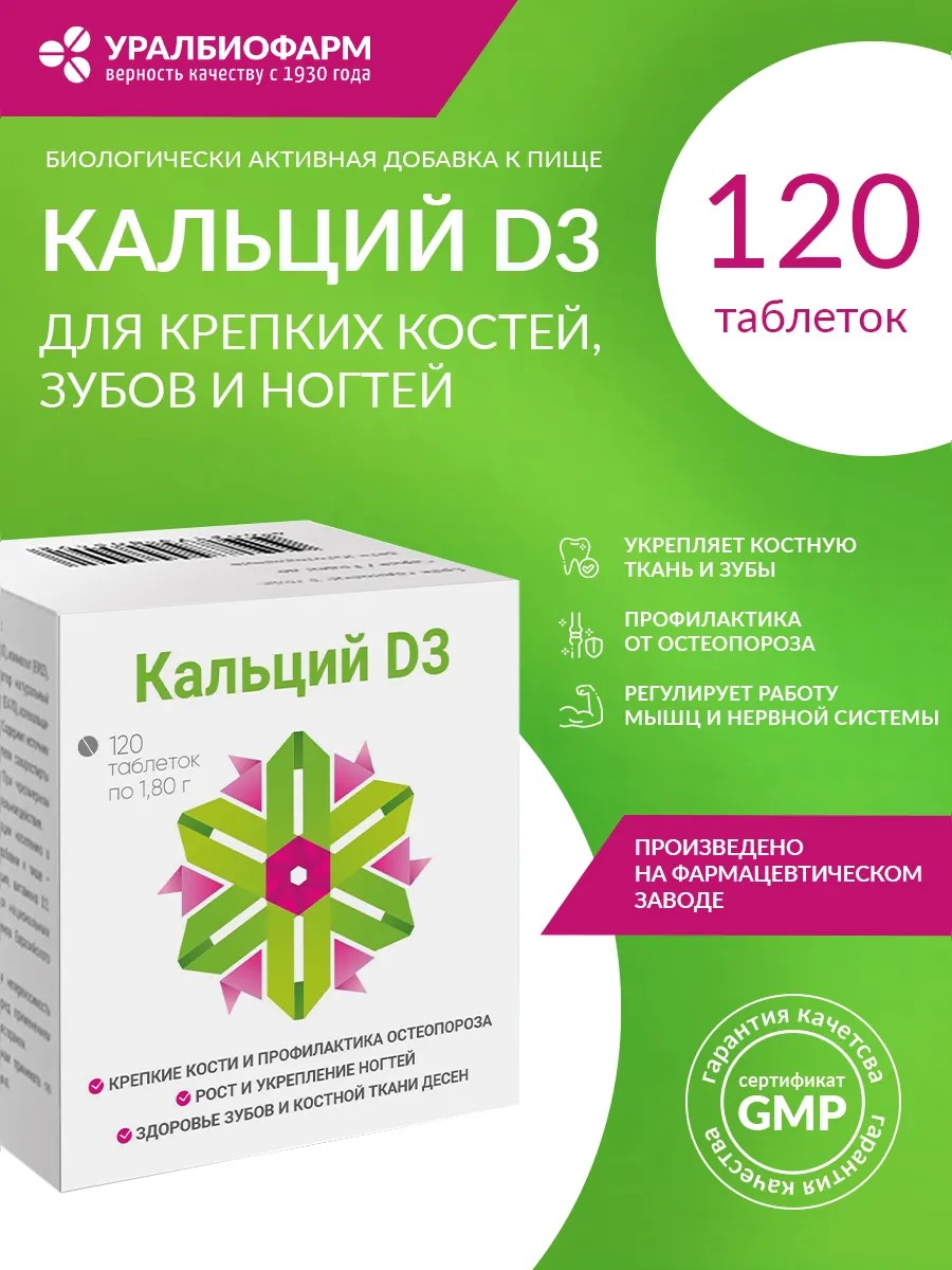 Кальций Д3 таблетки массой 1,80 г, 120 шт, Уралбиофарм
