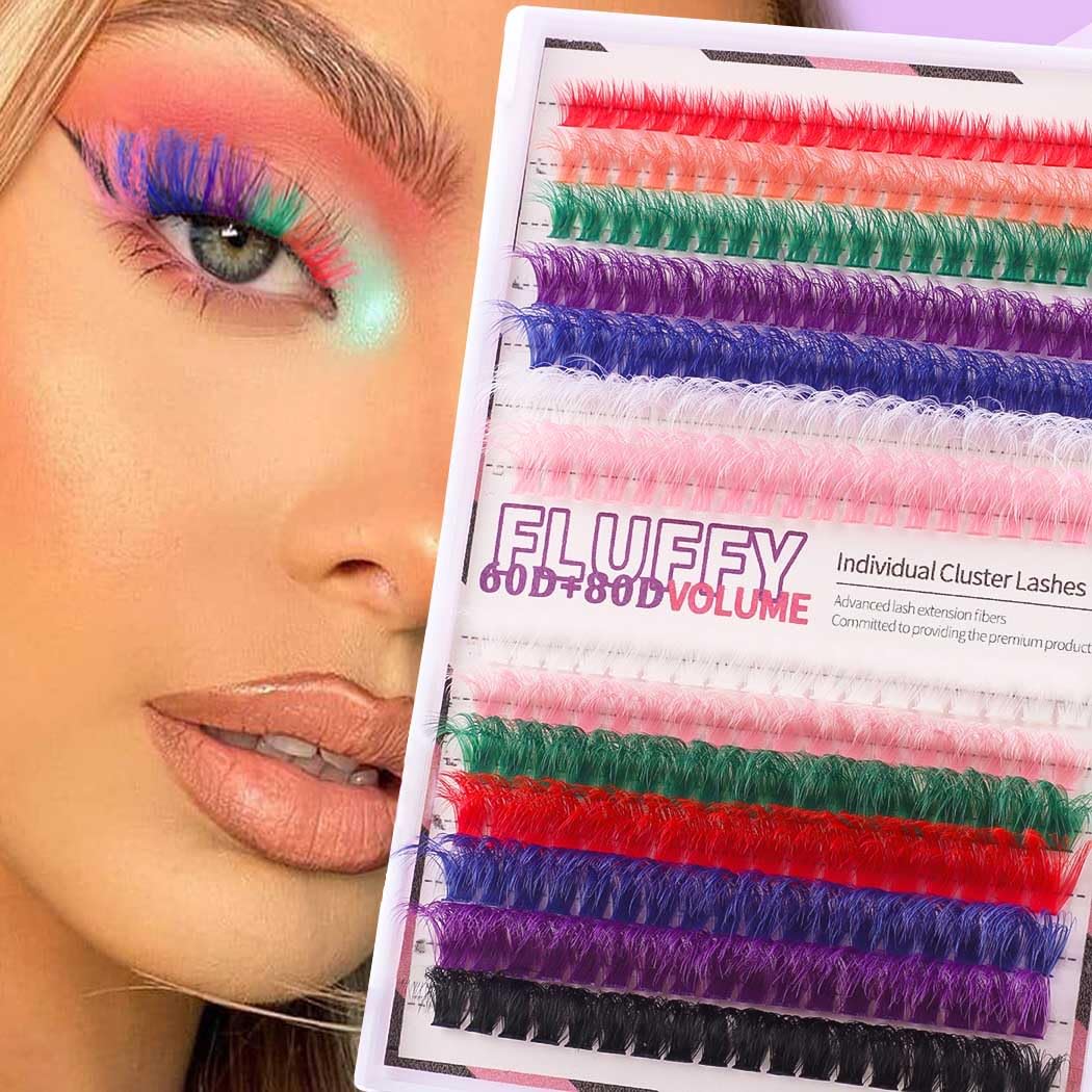 Uranian Halloween False Eyelashes with Color Cluster DIY Faux Mink Lashes Features: 1. 280 pcs in box, 8-16mm, 8 colors. 2. Handmade, vegan and cruelty free. 3. Soft and skin-friendly, durable and reusable. 4. Natural look and light weight, Easy to wear. How to use: 1. Remove the eyelashes from the box, trim the eyelashes to fit your eyes. 2. Adjust the false eyelashes to fit your eye curve. 3. Apply eyelashes glue to the root of the false eyelashes. 4. When the glue dries slightly, press the fake eyelashes firmly against the roots of the natural lashes. Thank you for choose Uranian!No Eyelashes Glue: The package does not contain glue, but common eyelash glues are suitable for our false eyelashes. Occasions: Colorful lashes suitable for Halloween, Christmas, daily, stage, party, wedding, travel, night club or photograph. Share with mother, sister, friends, girlfriend on various holidays and festivals. Comfortable and Reusable: False eyelashes with color with lightweight, natural-length of these fake eye lashes are comfortable to wear. Suitable for most eye shapes. Trim the length according to your eyes before wearing. Color and Length: Cluster false eyelash assorted of 5 different lengths(8/10/12/14/16mm), 8 colors(Red, Orange, Blue, Green, Purple, Pink, White, Black), DIY as your will, suitable for most eye shapes, match your various makeup looks. Materials: Colored lashes extensions are made of super-light synthetic