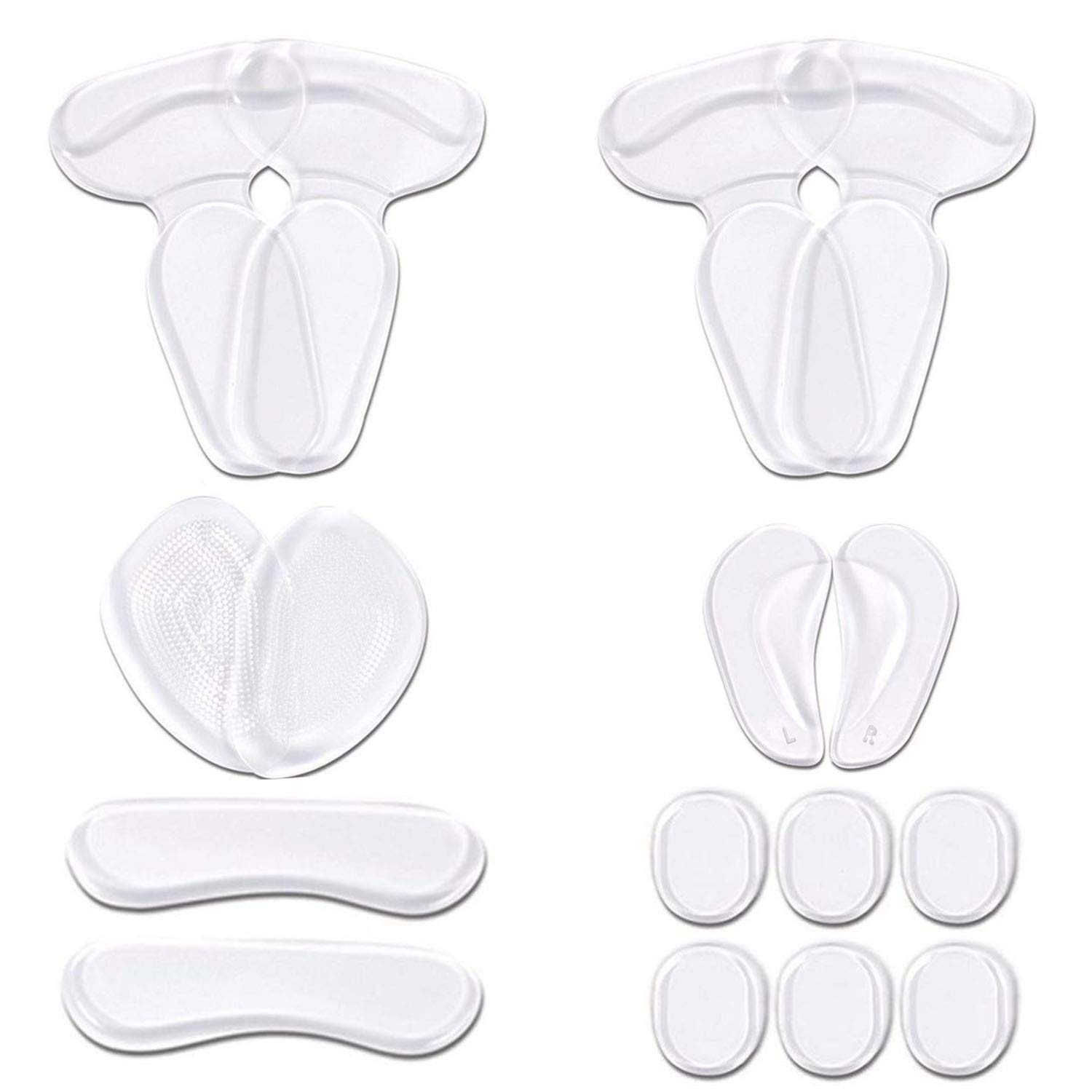 URAQT Invisible Heel Grips is an Orthotic Device Specially Designed for Improving Your Feet' Health! 1. Good Stickiness The heel pads feature with good stickiness favorable to keep them in place firmly when dancing, shopping, and running, etc. 2. Protect Your Heels These heel pads are made with soft Strong Sticky Fabric & Silicone Material, good for reducing the friction between shoes and feet to avoid foot pain and blisters after long walking. 3. Heel Pain Killer Hit-and-absorb' technology significantly reduces impact, the same time the side and back protectors soften chafing, holds the heels in place and prevents rubbing. Provide extra cushioning for your heel. Help prevent heel blisters, pain, and offer all-day comfort. 4. Party All Night Party season means countless occasions on which you need to wear sparkly, impractical, towering heels. Safeguard your feet with Heel Grips and get through the night without winding up as the barefoot girl on the dance floor. 5. Invisible Gel Heel Grips Effectively helps prevent chafing and cutting of the skin. It provides a lasting and comfortable fit around the heel. Package Include: Two in one stickers(2 pairs) + big arch pad + moon stickers + small forefoot pad + 6 patch set LEGAL DISCLAIMER URAQT Invisible Heel Grips is an Orthotic Device Specially Designed for Improving Your Feet' Health! 1. Good Stickiness The heel pads feature with good stickiness favorable to keep them in place firmly when dancing, shopping, and running, etc. 2. Protect Your Heels These heel pads are made with soft Strong Sticky Fabric & Silicone Material, good for reducing the friction between shoes and feet to avoid foot pain and blisters after long walking. 3. Heel Pain Killer Hit-and-absorb' technology significantly reduces impact, the same time the side and back protectors soften chafing, holds the heels in place and prevents rubbing. Provide extra cushioning for your heel. Help prevent heel blisters, pain, and offer all-day comfort. 4. Party All Night Party season means countless occasions on which you need to wear sparkly, impractical, towering heels. Safeguard your feet with Heel Grips and get through the night without winding up as the barefoot girl on the dance floor. 5. Invisible Gel Heel Grips Effectively helps prevent chafing and cutting of the skin. It provides a lasting and comfortable fit around the heel. Package Include: Two in one stickers(2 pairs) + big arch pad + moon stickers + small forefoot pad + 6 patch set✓Package Include: 2 pairs 2 in1 stickers + 1pair big arch pad + 1 pair moon stickers + 1pair small forefoot pad + 6 pcs patch set. ✓One Size Fits Most: Reusable and washable, but please don't put it under the sunlight. ✓Good Adjustment To Shoes: Make the shoe fitter for your feet and comfortable. ✓Crystal Clear Silicone Gel Material: Prevent slippage, thus providing a better grip, and stays in place.Great to wear it if the shoes are sliding or grinding. ✓Soft And Comfortable To Wear: With healthy massage, decompression and shock resist function, mainly used for high-heeled shoes, leather shoes, and sports shoes.