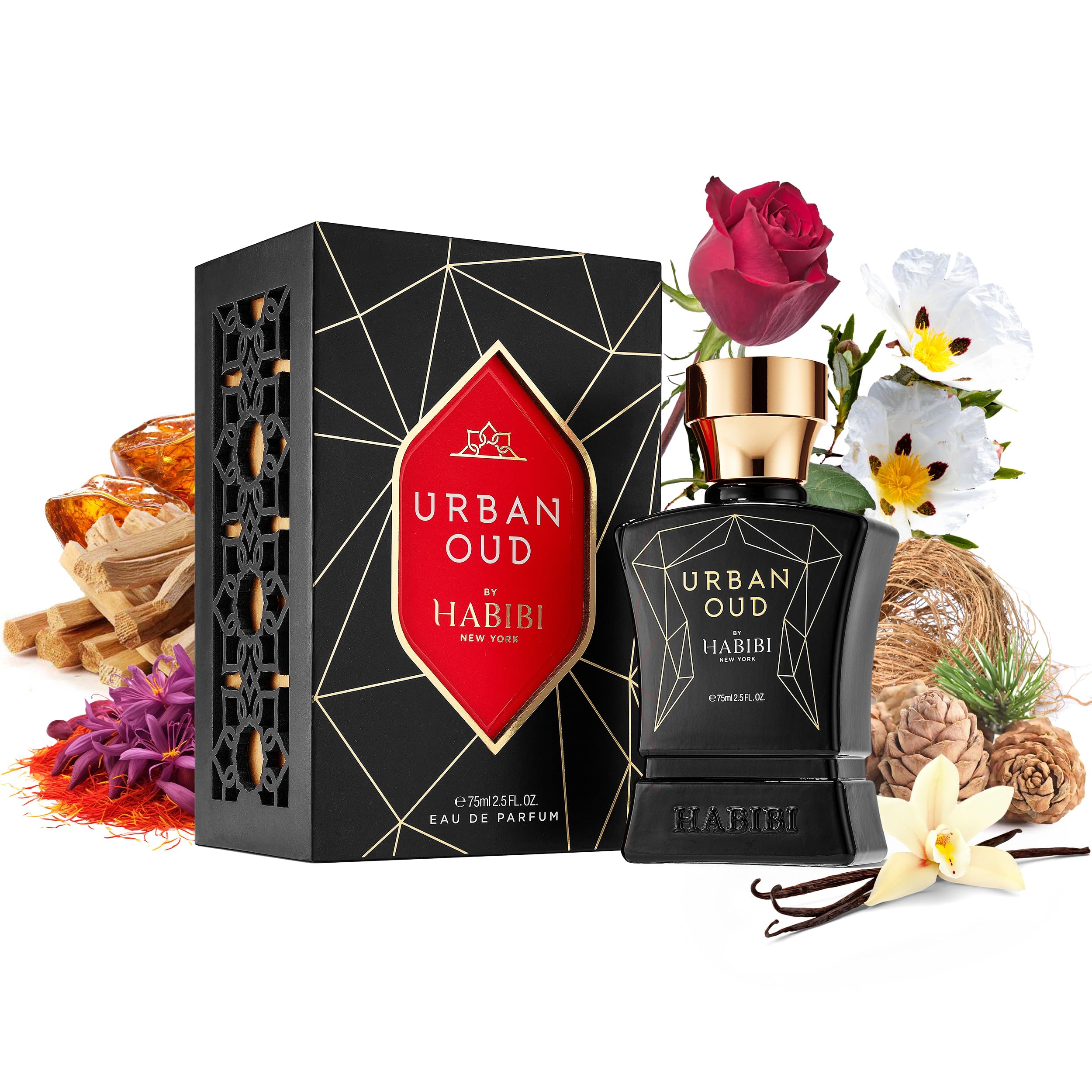 BASE NOTES: Castoreum, Cedarwood, Cistus, Dry Amber, Guaiac Wood, Oud, Patchouli, Vanilla, Vetiver. HEART NOTES: Carrot, Jasmine, Lie De Vin, Orris, Papyrus, Rose, Saffron, Suede. TOP NOTES: Bergamot, Cardamom, Mandarin, Nutmeg, Baies Roses. GIFT-READY GLAMOUR: Designed by master perfumer Julie Pluchet, this versatile cologne comes in a luxurious handcrafted box, making it an ideal choice for men's fragrances and elegant mens gifts for any occasion. DEFINE YOUR STYLE: Experience the allure of arabian perfume with this men perfume by H HABIBI. A bold blend of dark spices and citrus, inspired by NYC’s energy. With 30% perfume oil concentration, enjoy long-lasting elegance and sillage. ENCHANTING BLEND: Elevate your senses with this arabic perfume, a citrusy burst blends with Middle Eastern spices, suede, and saffron, while amber, oud wood, leather, and vanilla perfume notes create a formal, mysterious parfum men.