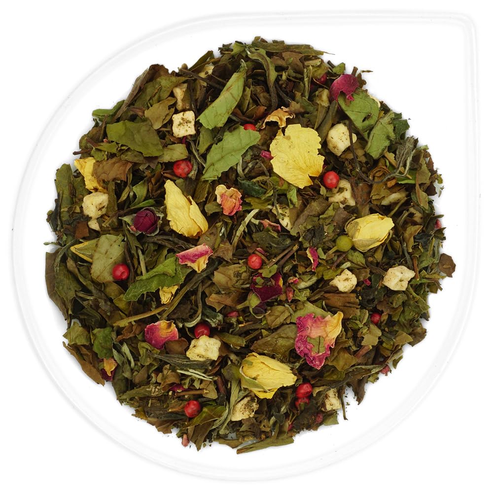 Taste: Light, fruity and flowery white tea with a wonderful rose note.Ingredients: white tea, apple pieces, black tea, rose cups (3.5 ), raspberry pieces (1.75 ), rose petals (1.75 ), pink pepper, aroma, natural aroma.Wonderfully light, fruity-flowery white tea with a wonderful rose note!""Hell"", ""sunny"" and ""airy"", these are the words that characterize this tea well-a tea for all seasons, but certainly also well suited as a small mood push for the darker months of the year.Very productive . a pleasure!.High quality white and mild, floral green teas mixed with domestic and exotic fruits - results in wonderfully fruity, digestible, naturally flavored white tea blends.Geschmack: Leichter, fruchtig-blumiger weißer Tee mit wunderbarer Rosen-Note. Zutaten: Weißer Tee, Apfelstücke, schwarzer Tee, Rosenknospen (3,5 ), Himbeerstücke (1,75 ), Rosenblütenblätter (1,75 ), rosa Pfeffer, Aroma, natürliches Aroma. Herrlich leichter, fruchtig-blumiger weißer Tee mit wunderbarer Rosen-Note! ""Hell"", ""sonnig"" und ""luftig"", das sind die Worte, die diesen Tee gut charakterisieren – ein Tee für alle Jahreszeiten, aber sicher auch besonders gut geeignet als kleiner Stimmungs-Push für die dunkleren Monate des Jahres. Sehr ergiebig. ein Genuss!. Hochwertige weiße und milde, blumige grüne Tees gemischt mit heimischen und exotischen Früchten - ergibt herrlich fruchtige, bekömmliche, natürlich aromatisierte weiße Teemischungen.URBANTEADEALERS Raspberry Rose Aromatisierte Weißteemischung mit Himbeer-Rose-Geschmack, 100g Raspberry Rose 100g