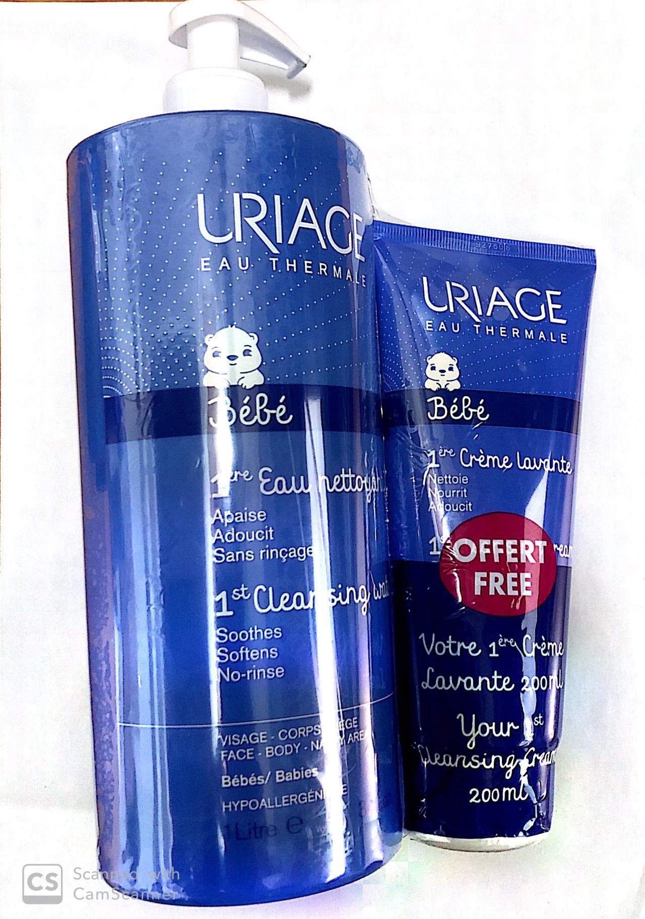 Uriage Baby 1st Cleansing Water Without Rinsing 1 L + 1st Cleansing Cream 200 ml Free