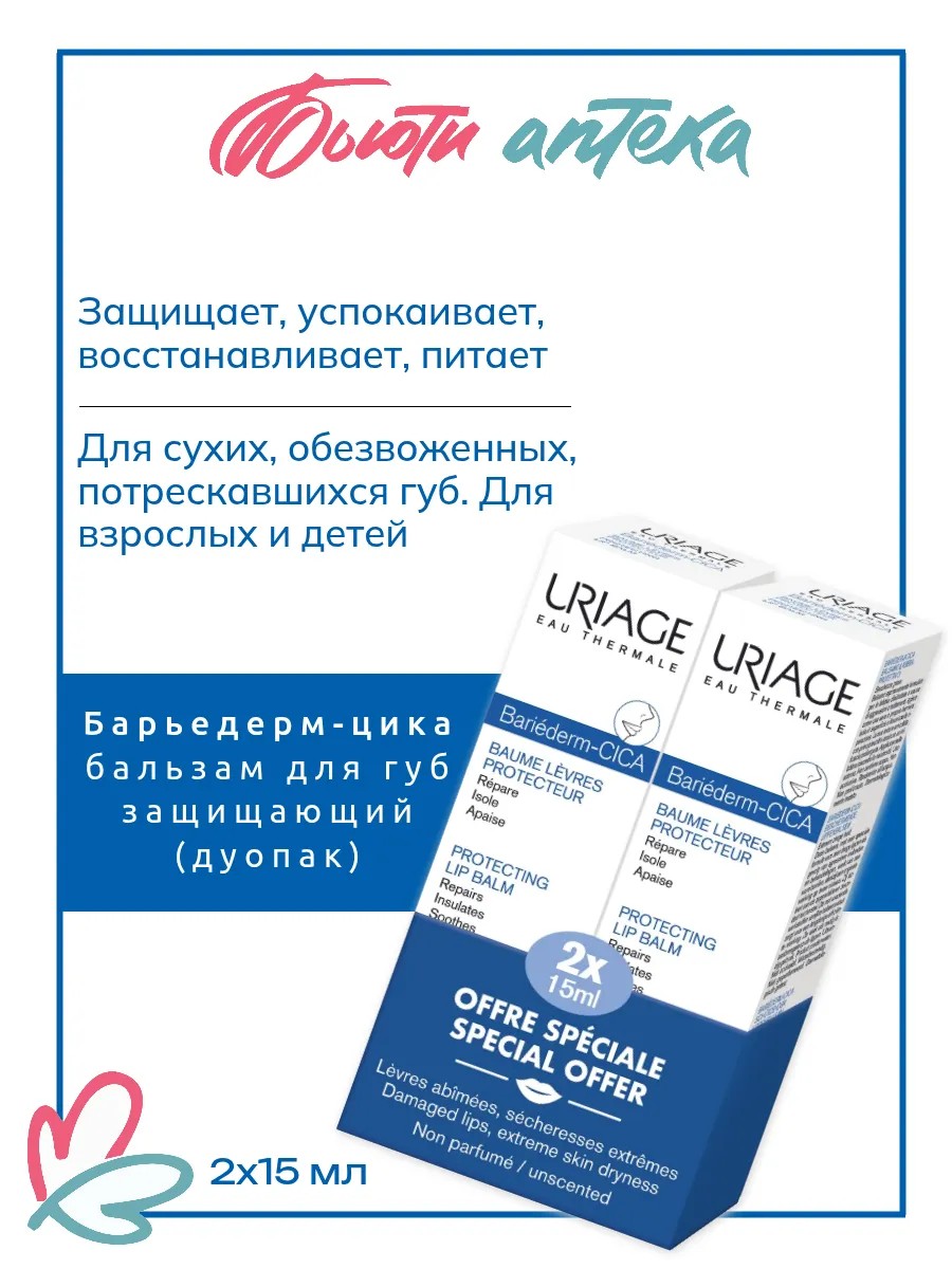 Барьедерм-цика Защищающий бальзам для губ 15мл*2шт