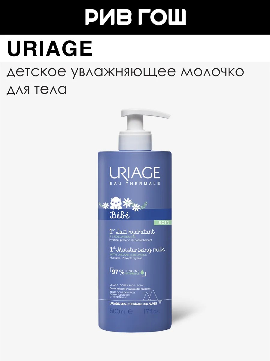 Средство с лёгкой текстурой молочка и деликатным ароматом мгновенно увлажняет кожу малыша и быстро впитывается. Термальная вода урьяж и экстракт эдельвейса, в комбинации с растительным скваланом и маслом ши, защищают и питают кожу. Предназначено для лица и тела. Может использоваться для легкого массажа. Способ применения Наносить ежедневно на чистую сухую кожу. Состав: термальная вода урьяж, масло ши, растительный сквалан, глицерин, экстракт эдельвейса 97% ингредиентов природного происхождения, физиологический pH. Протестировано под контролем дерматологов и педиатров. Bebe 1 Ere Детское молочко для тела увлажняющее, 500 мл. У нас Вы всегда сможете подобрать женскую и мужскую парфюмерию, декоративную косметику, а так же уходовые средства для волос, тела и лица. РИВ ГОШ вдохновляет дарить подарки каждый день. Молочко для тела детское косметический продукт, который сочетает в себе множество полезных свойств для ухода за детской кожей. Попробуйте наше детское молочко для тела, которое не только увлажняет кожу, но и придает ей нежный аромат. Этот продукт предназначен для увлажнения и питания кожи, благодаря чему молочко становится идеальным выбором для различных типов кожи, включая сухую и чувствительную. Молочко для тела предотвращает сухость и раздражение на коже, придает легкий и приятный аромат. Молочко детское имеет в наличие ухаживающие вещества, такие как витамины и минералы, которые способствует питанию и укреплению кожи, делая ее здоровой.