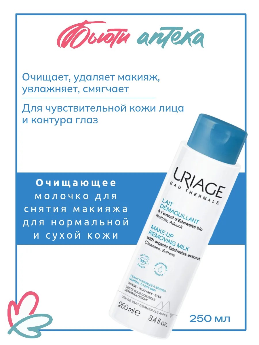 Uriage Lait Démaquillant (Урьяж Молочко для снятия макияжа очищающее) для всех типов кожи, в том числе чувствительной.