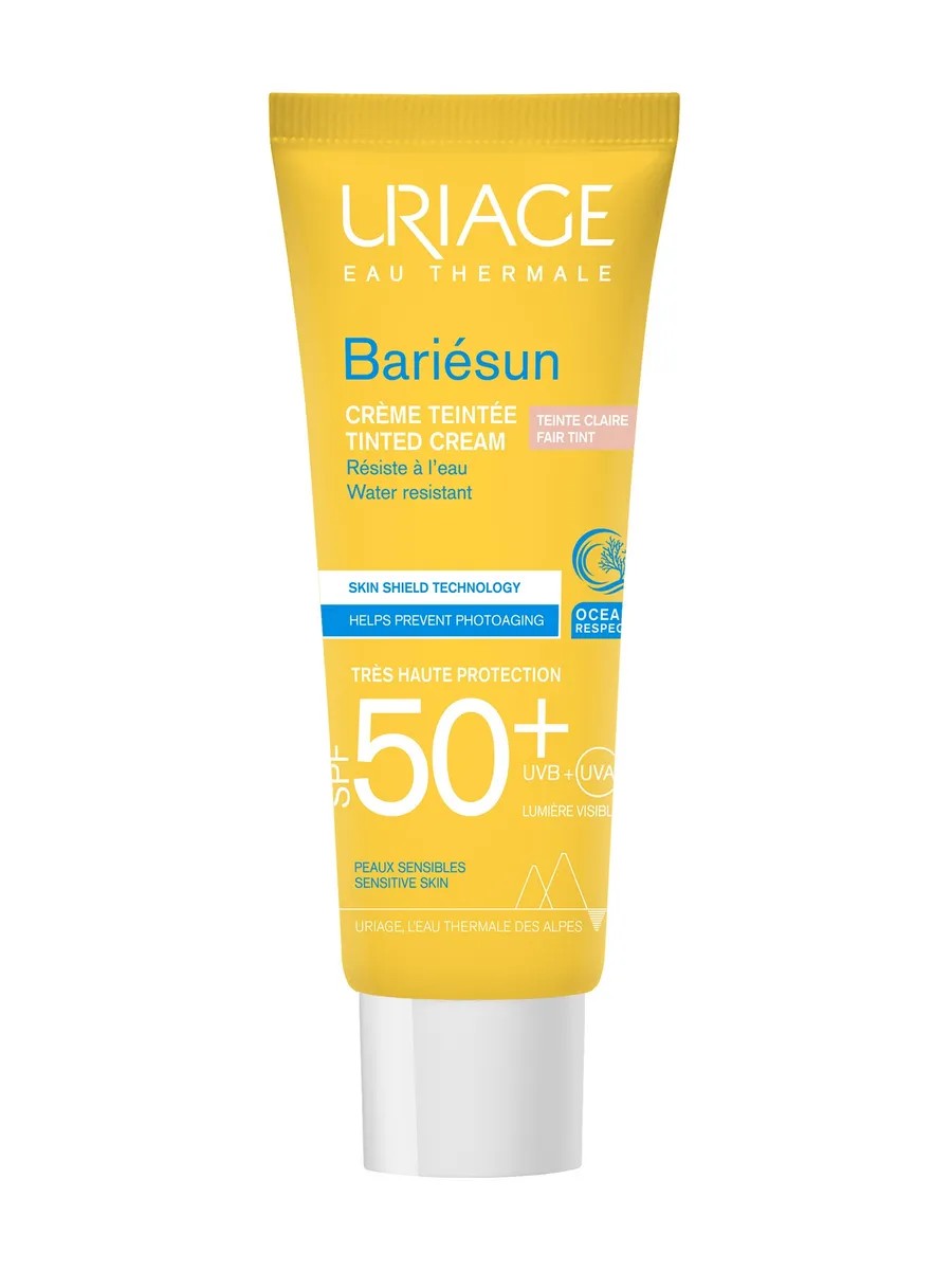 Солнцезащитный тональный крем для лица Bariesun Teintee Claire SPF50+ от компании Uriage подходит для любого типа кожи, в том числе и для чувствительной. Он имеет нежирную и легкую текстуру, хорошо ложится, отличается водостойкостью. Крем нивелирует негативное воздействие УФ-лучей солнца, помогает сохранить влагу в тканях. Благодаря ему кожа приобретает красивый ровный загар, не краснеет и не облазит. В его составе присутствуют токоферол и аскорбиновая кислота, витамины, которые являются природными антиоксидантами. Они разрушают свободные радикалы, которые ускоряют старение кожи. Крем отличается гипоаллергенностью, имеет приятный аромат, в его составе отсутствуют парабены и спирты.
