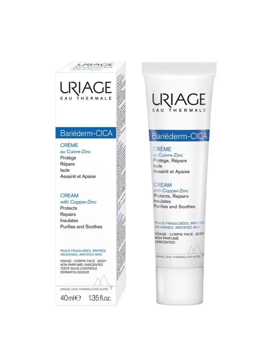 Bariederm Cica Cream is effective for diaper rash and diaper dermatitis: it gently cares for the delicate skin of infants, instantly relieving discomfort in irritated areas. Children are prone to diaper dermatitis due to their physiological characteristics: thin, delicate skin that absorbs moisture well, as well as a weak barrier and protective function. Bariederm Cica Cream stimulates skin regeneration and has an antibacterial effect. It has an insulating effect, forming a non-occlusive film on the skin's surface. Its anti-inflammatory effect instantly soothes irritated, damaged skin and reduces pain. The cream is also very convenient to use after dermato-aesthetic procedures (peeling, mechanical facial cleansing, tattooing). It instantly soothes the skin, restores its smoothness, and ensures rapid natural healing. HOW TO USE: Apply a thin layer of cream twice daily to skin cleansed with Uriage Barriederm Cica-Gel Cleansing with Cu-Zn.