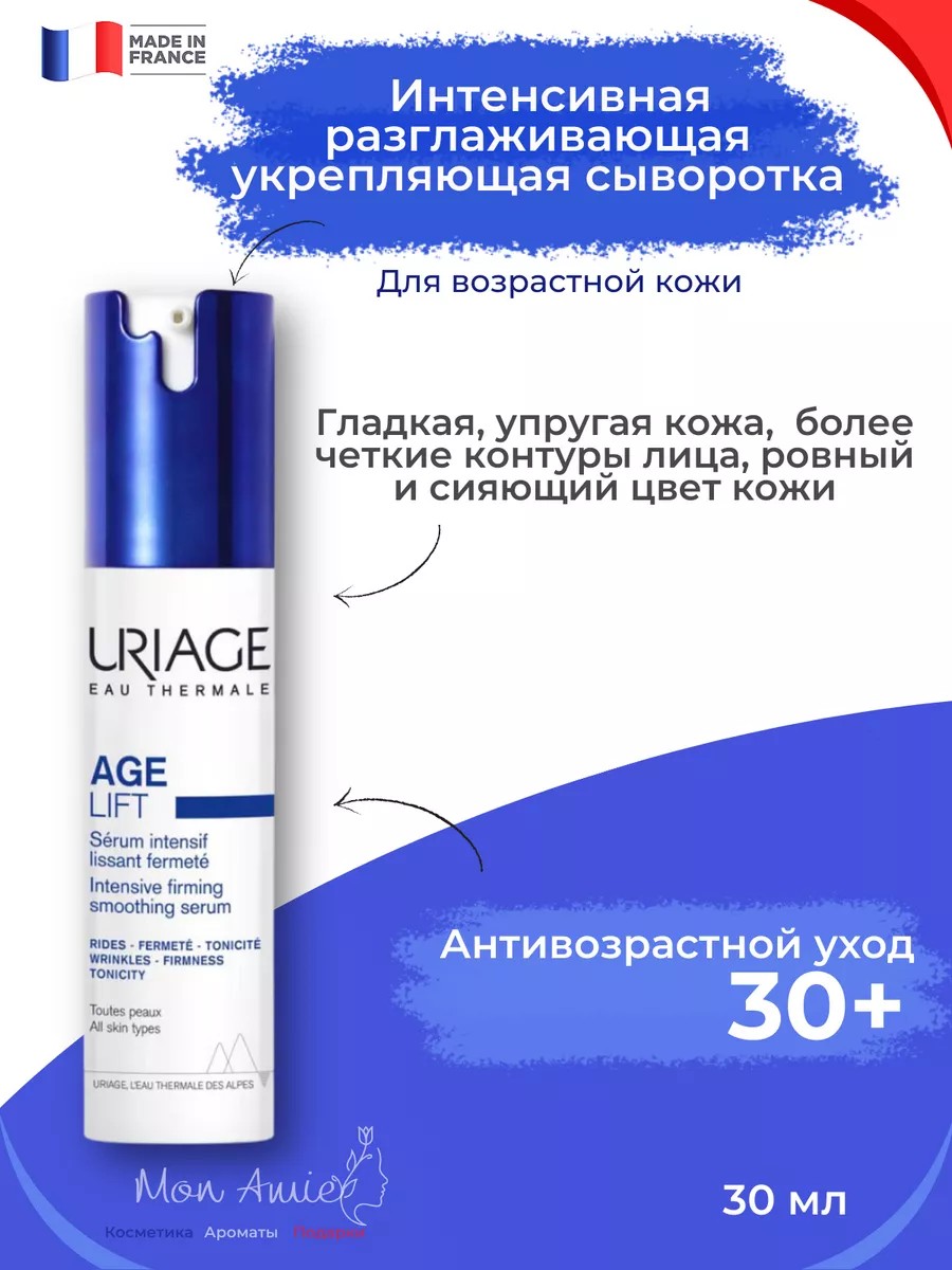 Uriage Age Lift Serum intensif lissant fermete 30 мл (Сыворотка интенсивная разглаживающая укрепляющая) для всех типов кожи.