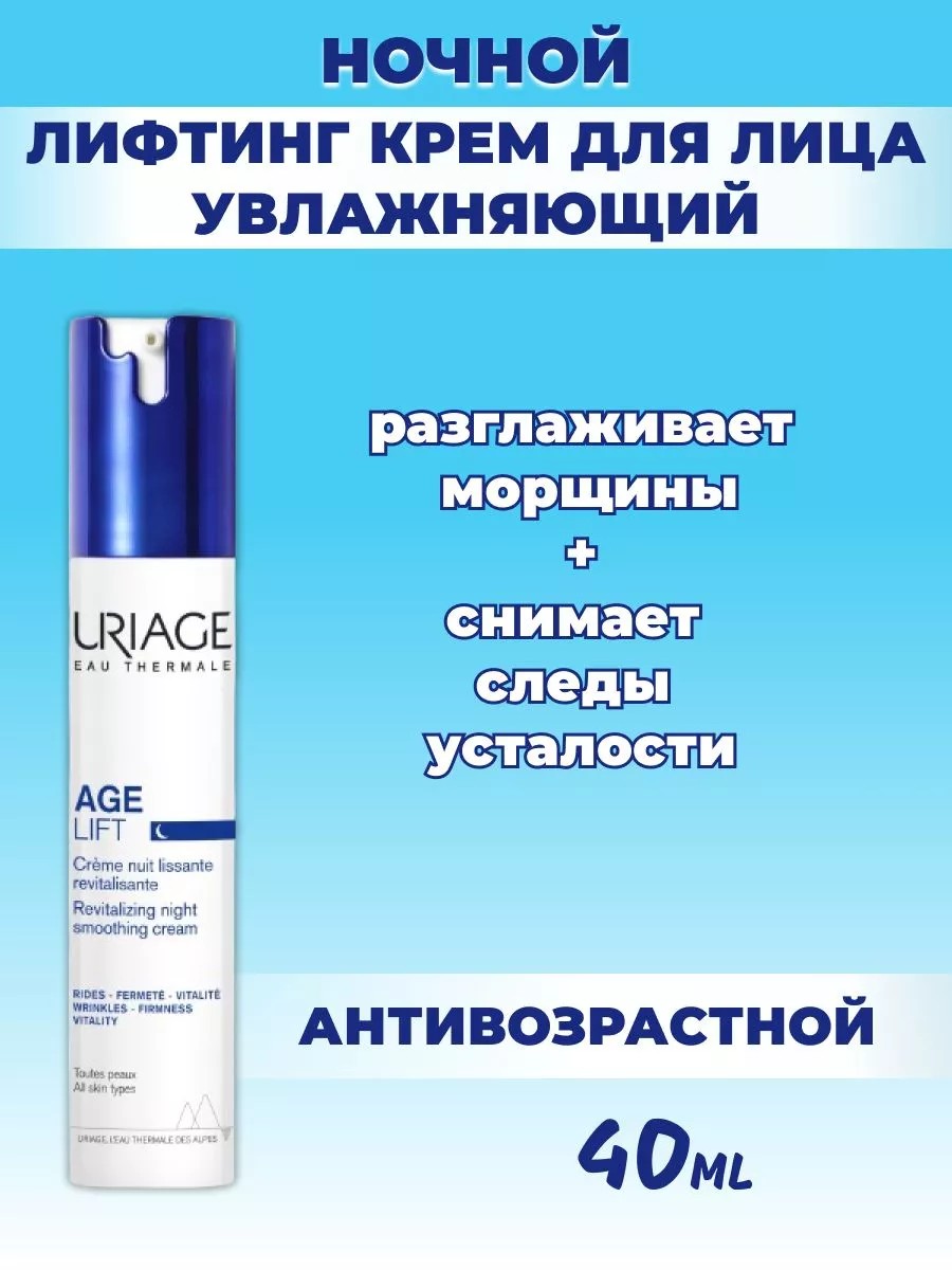 Крем ночной восстанавливающий разглаживающий Uriage Age Lift - Этот волшебный продукт придет на помощь вашей коже, независимо от того, мужчина вы или женщина, подросток или взрослый. АНТИВОЗРАСТНОЙ НОЧНОЙ КРЕМ – разглаживает и укрепляют все типы кожи, даже чувствительную. Противовоспалительный и выравнивающий серум стоп черные точки помогает убирать раздражения и покраснения, интенсивно избавляет от комедонов и угрей на лбу и подбородке. Ниацинамид в составе стимулирует обновление и заживление клеток. Контуры лица лучше очерчены, цвет лица ровный и яркий. Питательный состав для всех типов кожи, в том числе для чувствительной нормальной и обезвоженной. Его формула, обогащенная антивозрастными активными ингредиентами , уменьшает появление тонких линий и морщин, борется с потерей тонуса и отсутствием упругости, восстанавливает жизненную силу и сияние.Этот омолаживающий ночной крем с витаминами C и E выводит токсины и выравнивает цвет лица, делая его сияющим и сияющим.Формула, обогащенная маслом ши, делает кожу упругой и надолго увлажненной.Восстанавливающий крем лифтинг для лица ночной. Он сочетает в себе передовые технологии, чтобы преподносить вашей коже лучшее из двух миров.Наносите антивозрастной ночной крем на все лицо каждый вечер в качестве ежедневного ухода. Помогает подчеркнуть контур лица. Это как фонтан свежести для вашего лица - он сразу начинает увлажнять и питать вашу кожу, помогая избавиться от сухости и шелушения. Гамма средств Эйдж Протект воздействует как на морщины, так и против агрессивных факторов: стресс и усталость. В гамме есть средства ухода как для кожи лица, так и для тела. Действенное средство против морщин и неприятных ощущений и стянутости. Урьяж имеет антивозрастной эффект для зрелой кожи. Его можно использовать для придания упругости коже рук и тела, шеи и декольте. Французская уходовая косметика - залог красоты и здровья женщин. Почувствуйте на себе превращение своей кожи после использования этого удивительного крема.