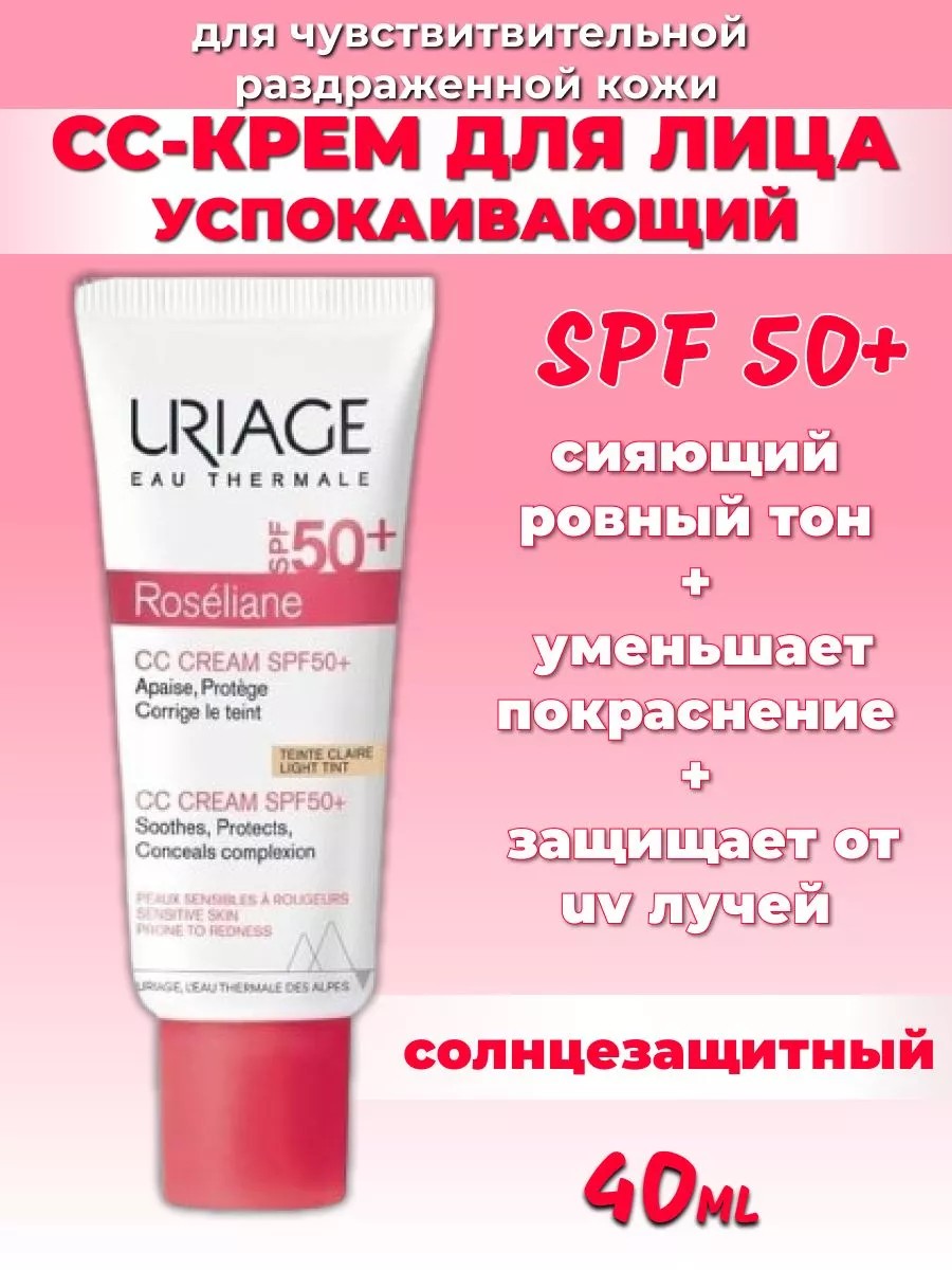 Крем Roseliane СС CREAME SPF50+, тон светлый богатый термальной водой специально разработанный для чувствительной кожи с покраснениями. Этот сухой и нормальный антивозрастной крем для лица призван стать вашим верным союзником в борьбе с негативными последствиями пребывания на улице. Готовьтесь к неизбежной встрече с лучами солнца! Успокаивающий тонирующий уход универсален: он корректирует цвет лица, скрывает покраснения и защищает кожу от UVA / UVB-лучей. Благодаря эксклюзивной комбинации запатентованных активных ингредиентов, он увлажняет, надолго успокаивает и восстанавливает кожный барьер.Его тающая и нежирная текстура делает кожу мягкой и сияющей. Тональник сс крем - этоновое покаление bb крема, выравнивает тон лица, маскирует покраснения.Подходит для всех типов чувствительной кожи, склонной к покраснению, а также куперозу. Снимает раздражение и дискомфорт от чувства стянутости благодаря содержанию успокаивающих, увлажняющих и противовоспалительных компонентов. Они аккуратно берегут и питают кожу лица, делая ее эластичной и упругой.СПФ защита от солнца зимой и летом. Розельян предназначены для чувствительной кожи лица с покраснением, видимыми мелкими сосудами в области крыльев носа, щёк, скул. В значительной мере уменьшают ломкость капилляров, укрепляют стенки сосудов и кожный барьер, уменьшают проявления купероза. Тоналка подходит для проблемной кожи подростков в борьбе с несовершенствами( от прыщей, сухости, акне и черных точек). Набор уходовой косметики Урьяж станет хорошим подарком для мамы или подруги на день рождения. Урьяж имеет омолаживающий и антивозрастной эффект для зрелой кожи. Баттер можно использовать для придания упругости коже рук и тела, шеи и декольте. Подходит для базы основы под макияж. Французская уходовая косметика - залог красоты и здровья женщин. Позвольте этому успокаивающему СС-крему стать вашим надежным партнером в создании безупречного образа и заботы о коже.