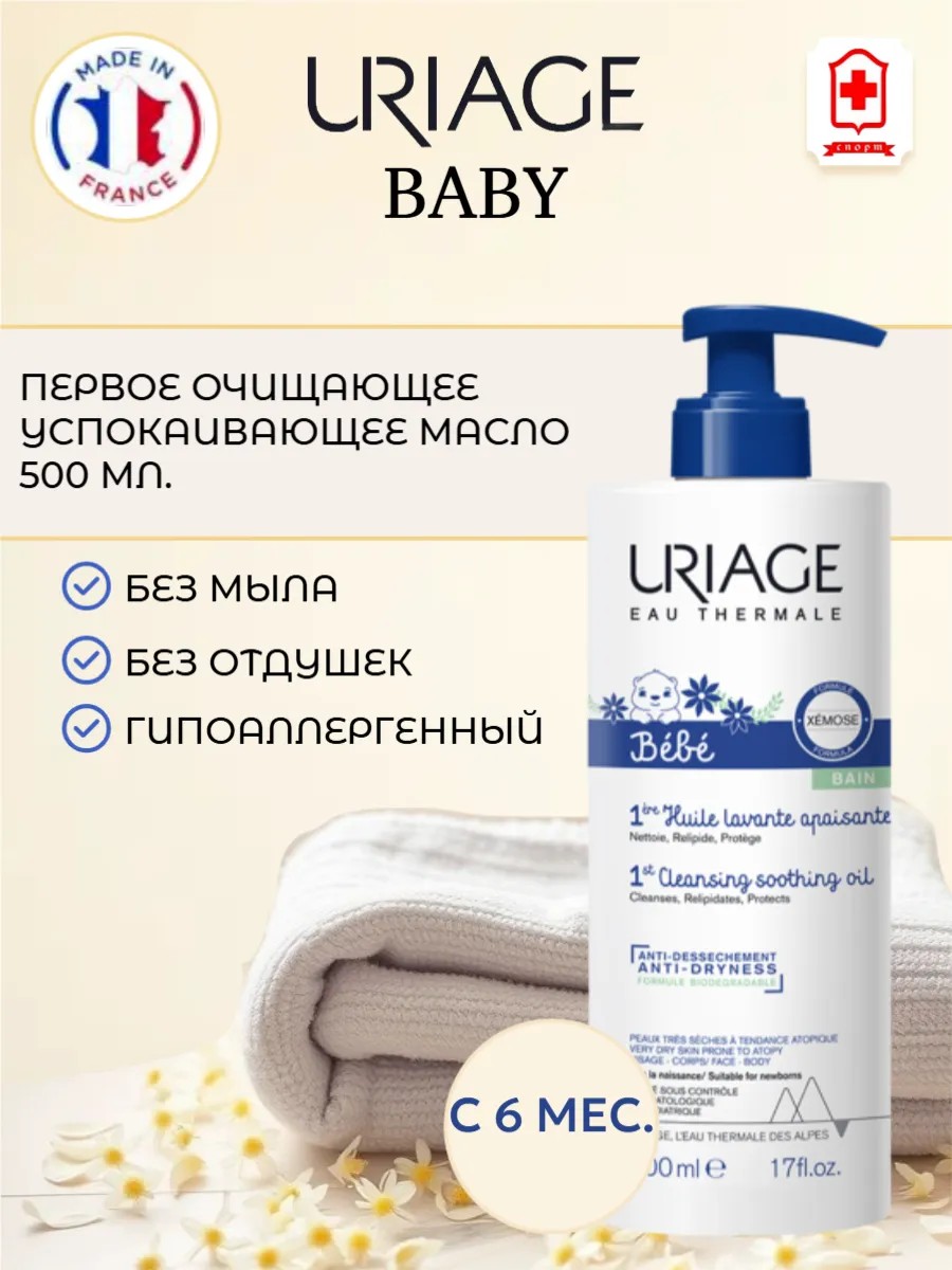 Uriage oil is designed for gentle cleansing and care of the delicate skin of babies and newborns.