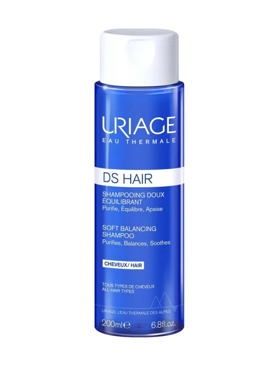 Uriage DS gentle shampoo with thermal water from the French Alps gently cleanses hair, relieves itching and inflammation, and regulates the sebaceous glands.