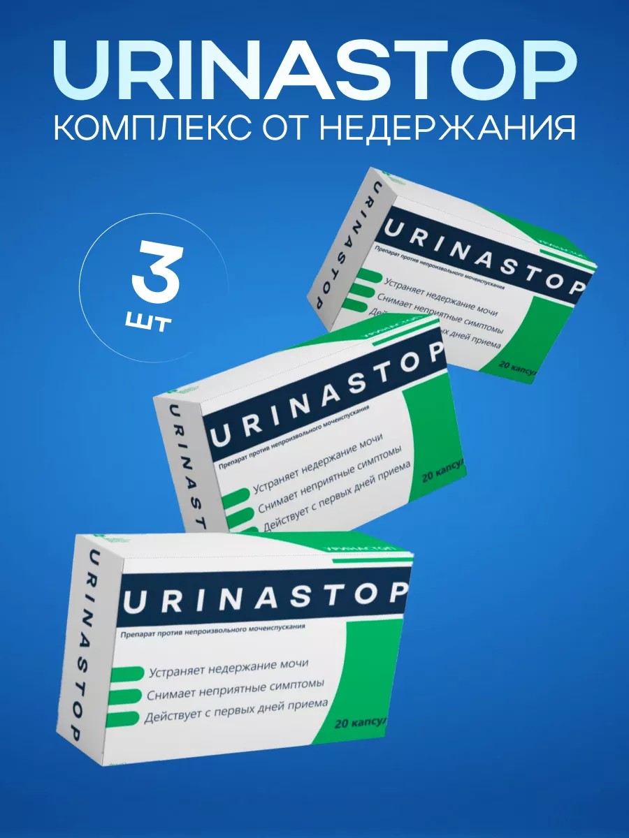 Urinastop is an effective remedy for edema, cystitis, and urinary incontinence in women. It is based on a natural anti-inflammatory and antiseptic herbal complex for the urinary tract, helping in the treatment of genitourinary diseases such as cystitis, pyelonephritis, prostatitis, and urinary incontinence. Urinastop capsules for incontinence contain plant extracts that have long been proven effective in the treatment of edema, cystitis, and urinary incontinence, as well as prostatitis in men and tablets for urinary incontinence in women. For example, lingonberry has anti-inflammatory, bactericidal, diuretic, and restorative effects, and is known for its effectiveness against cystitis and urinary incontinence, as well as urolithiasis. Bearberry has diuretic and antimicrobial properties and has been used for many years to treat urinary incontinence in women and men. Chamomile has anti-inflammatory, wound-healing, antiseptic, and analgesic properties and has long been used as part of a comprehensive treatment for genitourinary health. Urinastop, a remedy for urinary incontinence in women, is also appropriate for the treatment of prostatitis, pyelonephritis, and urinary incontinence. Use Urinastop for 20 days according to the instructions: 1 capsule once daily with the required amount of water. It is recommended to repeat the course after 14 days. Instructions for use are included with each package of the product. Following these recommendations will achieve the maximum effect. Urinastop is your reliable assistant in the fight against genitourinary problems! Don't put off taking care of your health; buy Urinastop now and feel the improvement in just a few days! This urinary incontinence remedy will return you to your normal life!