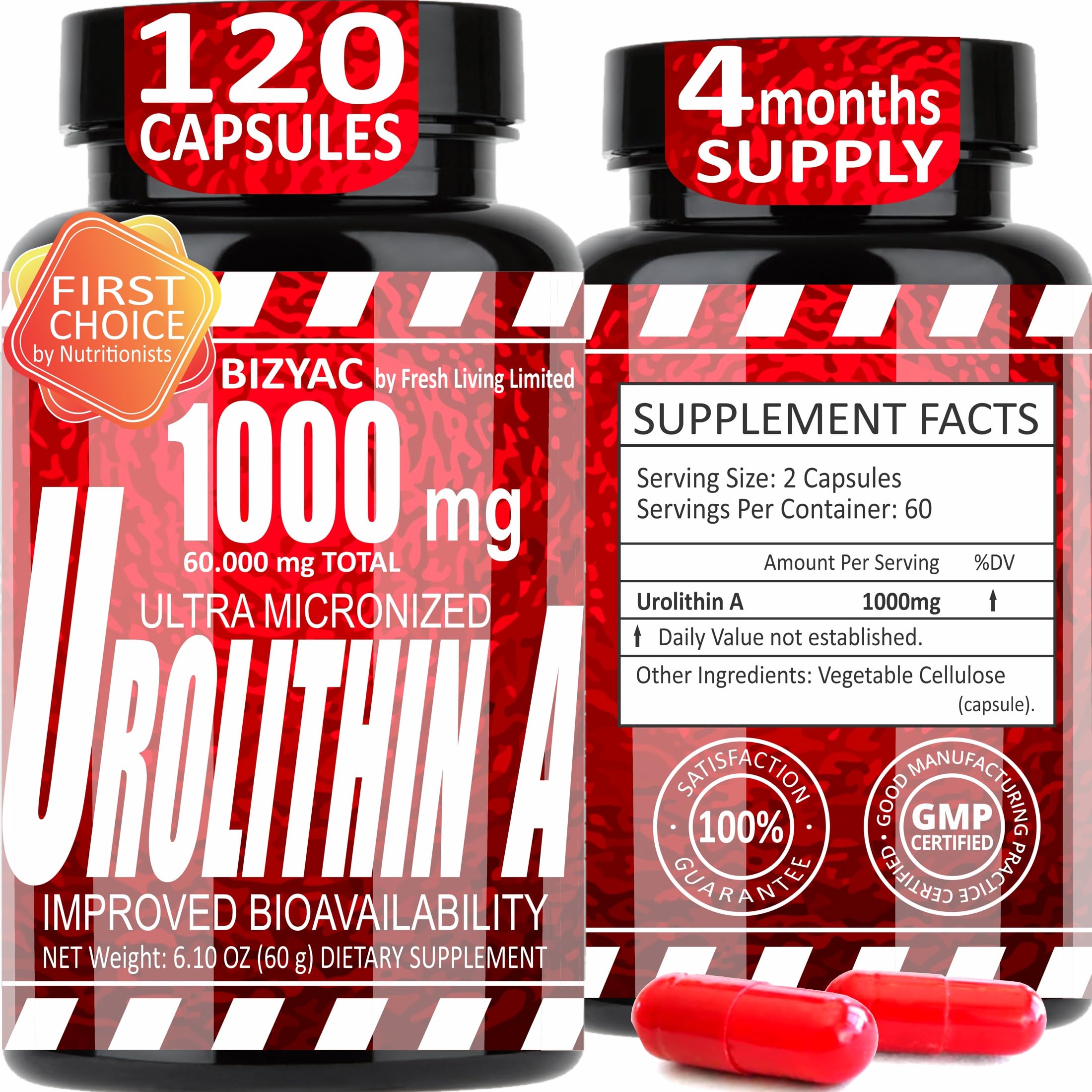 Urolithin a, urolithin a supplement, urolithin a gummies, urolithin a capsules supplement, urolithin a , urolithin, urolithin a supplement, uralithin a. SUSTAINED ACTIVE LIFESTYLE - Perfect for adults, athletes, and those with active routines, our capsules support muscle health and vitality. Designed to enhance mitochondrial function, they promote sustained energy and well-being to complement your dynamic lifestyle. SCIENCE-BACKED CELLULAR REJUVENATION - Supported by cutting-edge research, Urolithin A enhances mitochondrial function, providing a trusted solution for improving cellular health, boosting vitality, and promoting longevity for overall well-being. SIMPLIFIED DOSAGE - Designed for your busy lifestyle. With just two capsules delivering a potent 1000 mg dose, you can effortlessly integrate this supplement into your daily routine for maximum benefit. SUPPORTS MUSCLE STRENGTH AND CELLULAR ENERGY - Urolithin A boosts mitochondrial health, enhancing muscle strength and endurance. Choose 500mg daily for maintenance or 1000mg for advanced support. One bottle provides 120 servings at 500mg or 60 servings at 1000mg. ADVANCED CELLULAR SUPPORT - Our Urolithin A Pro Capsules feature Ultra-micronization for optimal absorption, promoting mitochondrial biogenesis essential for cellular health and vitality. This process is especially beneficial for muscle cells, enhancing overall performance.