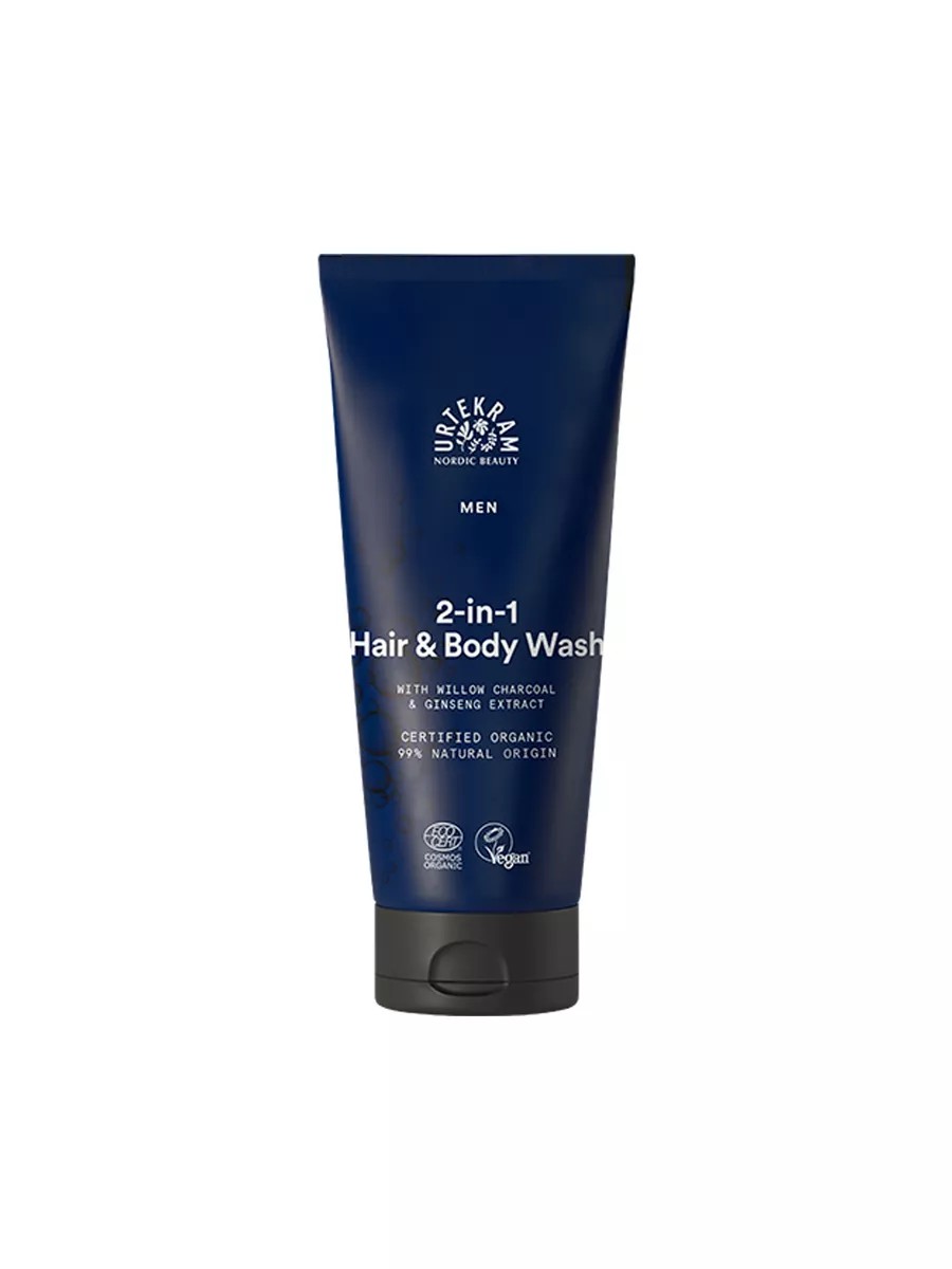 Urtekram Men's 2-in-1 Hair and Body Wash with Ginseng Extract and Organic Willow Charcoal. This 2-in-1 body and hair wash with ginseng extract and organic willow charcoal has a fresh, masculine scent. It helps leave skin and hair feeling incredibly clean and fresh.