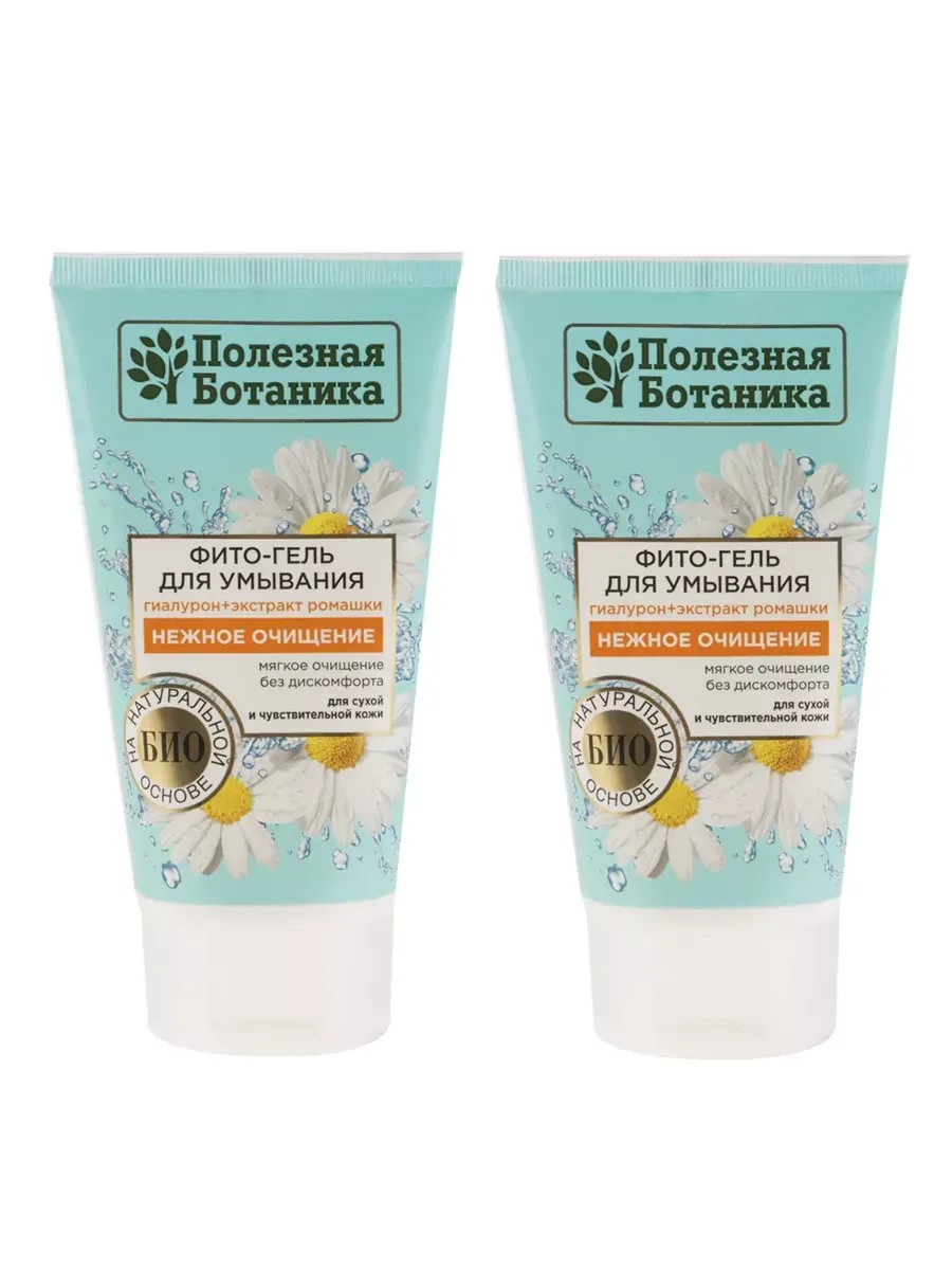 Set of 2. Useful Botanica Phyto-Gel Cleanser for Dry and Sensitive Skin, 150 ml. Chamomile extract has an antibacterial effect and intensively moisturizes the skin. Hyaluronic acid prevents dehydration, attracts and retains moisture in the skin.