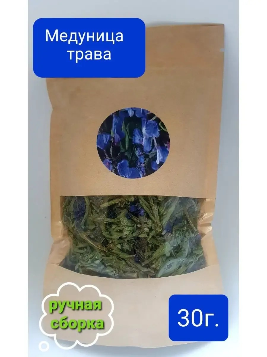 Трава медуница сушеная 30г. В травяном сборе использованы цветы, листья и стебли цветка медуницы.