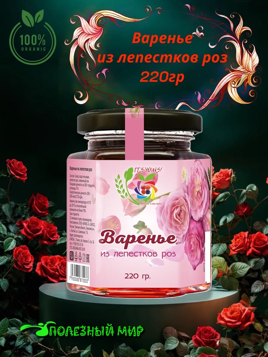 Этот натуральный продукт, приготовленный из свежих лепестков роз, порадует вас своим нежным розовым вкусом и ароматом. Варенье не содержит усилителей вкуса, ГМО и ароматизаторов, что делает его не только вкусным, но и полезным.