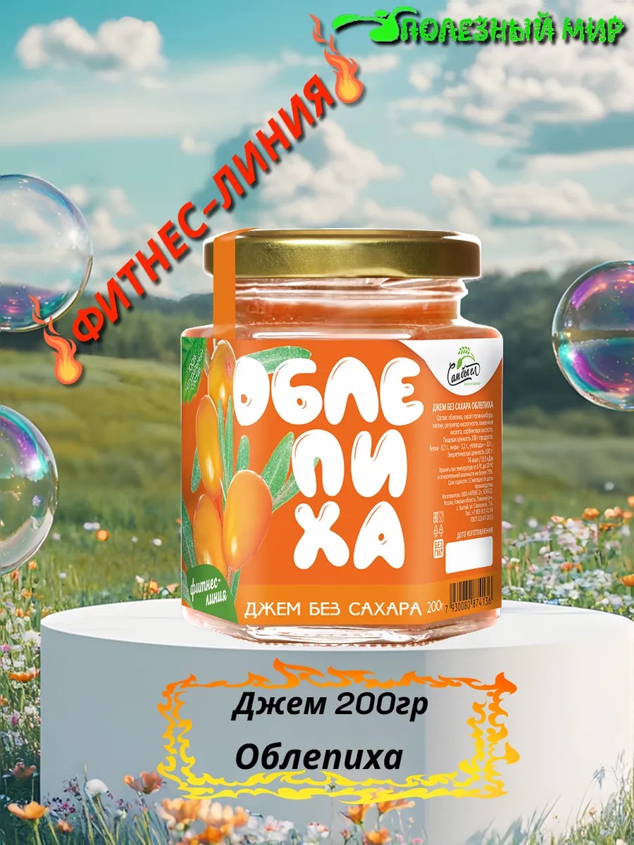 Полезный мир Джем без сахара 200 облепиха