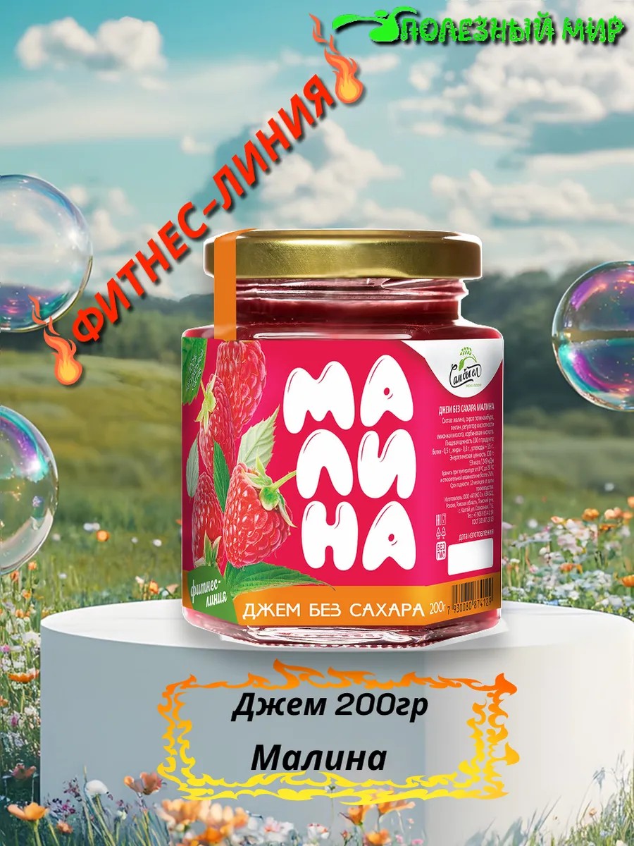 Полезный мир Джем без сахара 200 малина