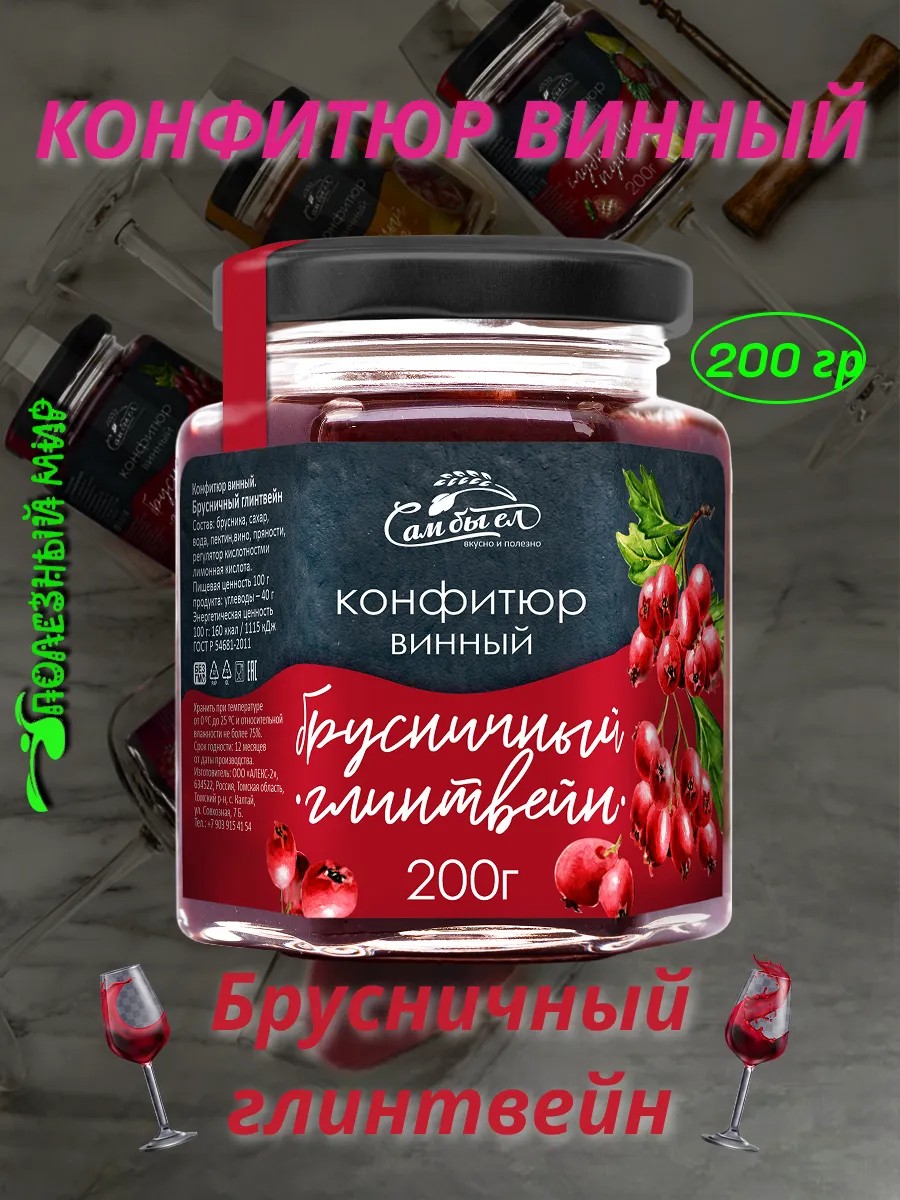 Полезный мир Конфитюр винный 200 "брусничный глинтвейн"