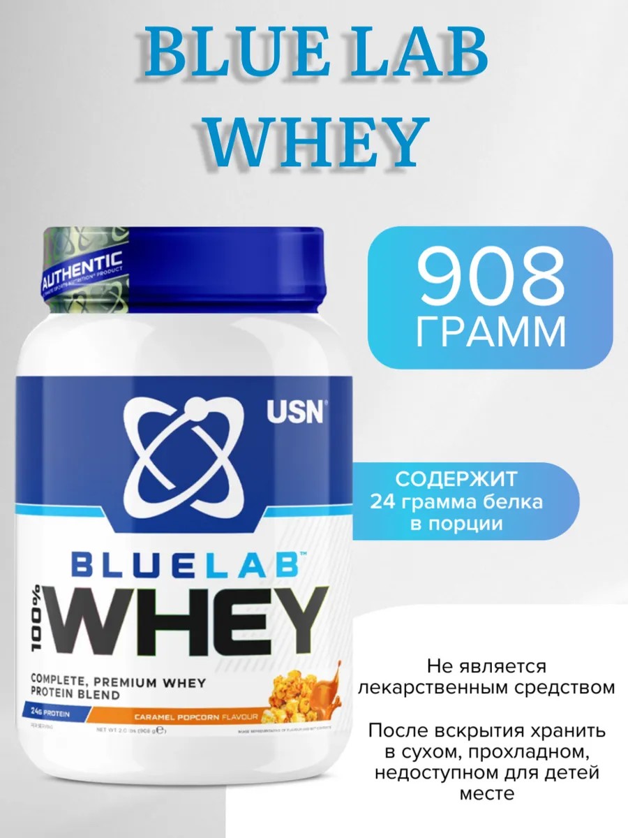 USN Blue Lab Whey сывороточный, 908 гр, Карамель-Попкорн